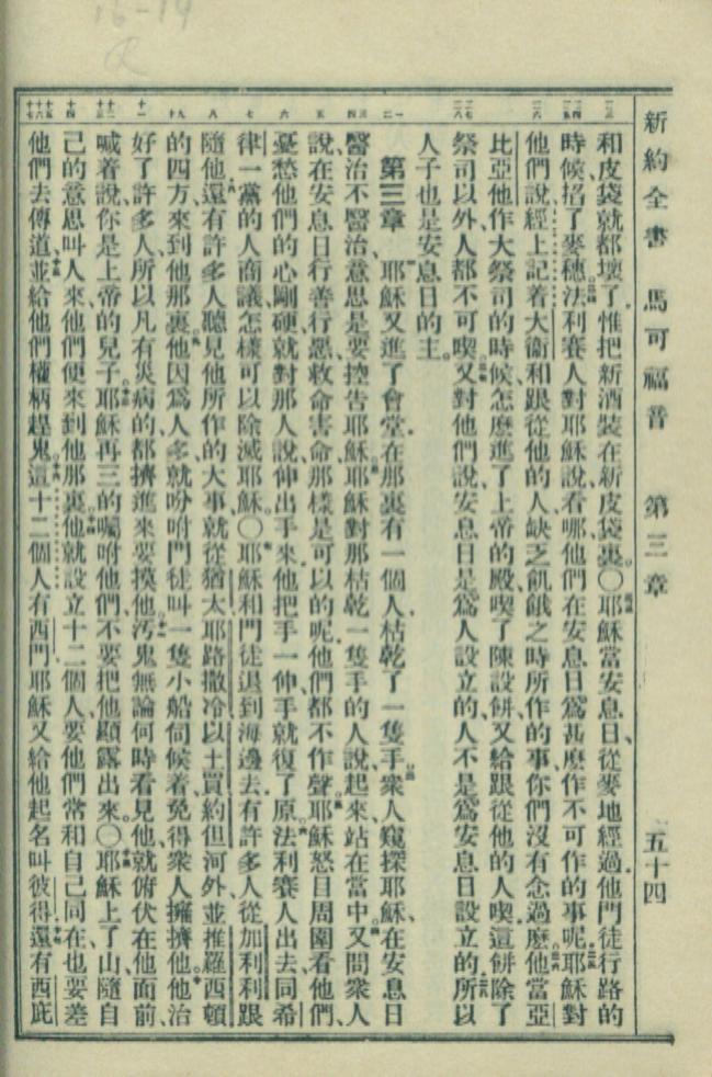 1949年新約全書 馬可福音 2 章 23 節到 3 章 17 節