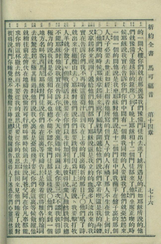 1949年新約全書 馬可福音 14 章 16 節到 14 章 38 節