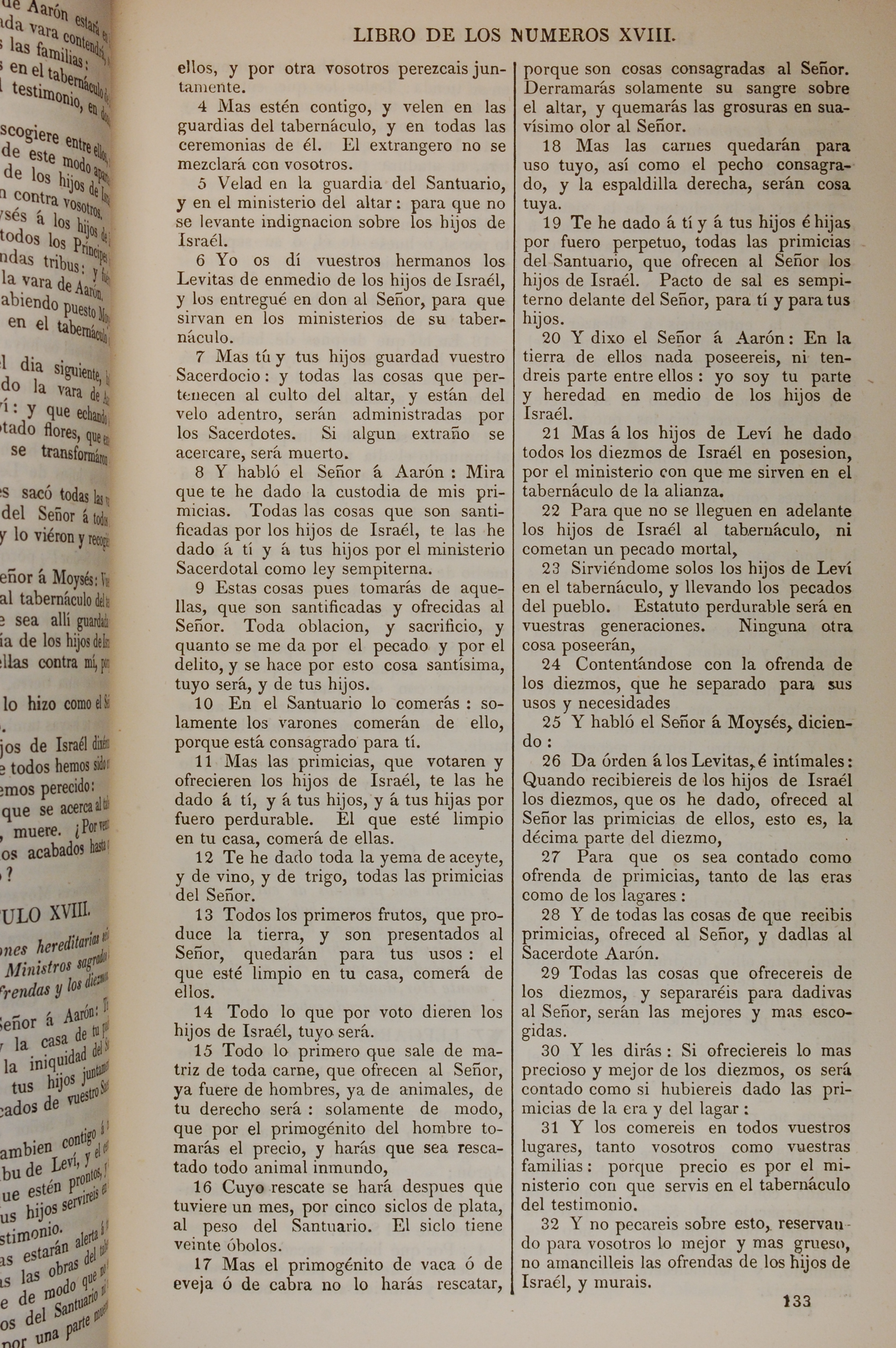 1858年La Biblia 民數記 18 章 4 節到 18 章 32 節