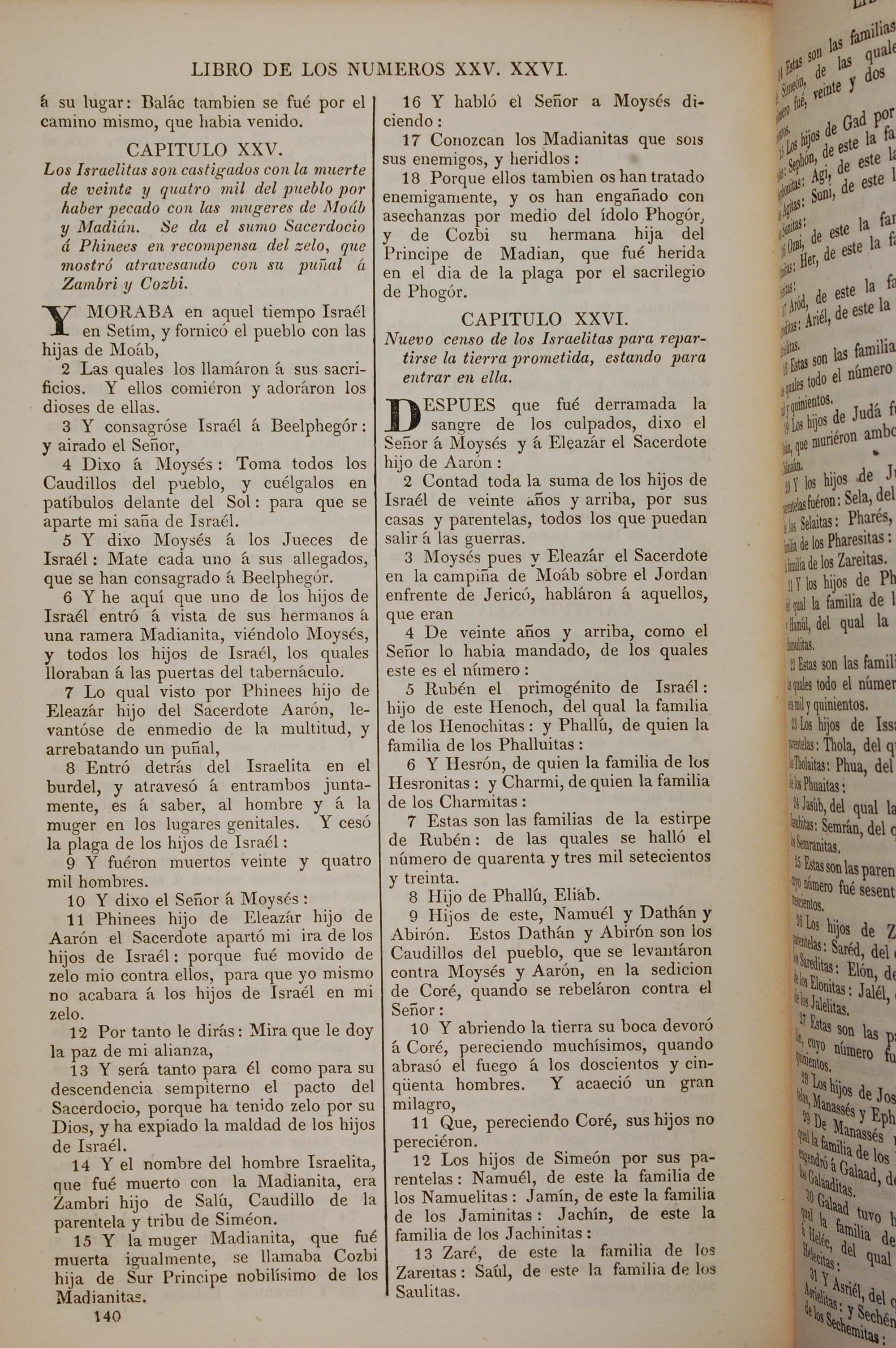 1858年La Biblia 民數記 25 章 1 節到 26 章 13 節