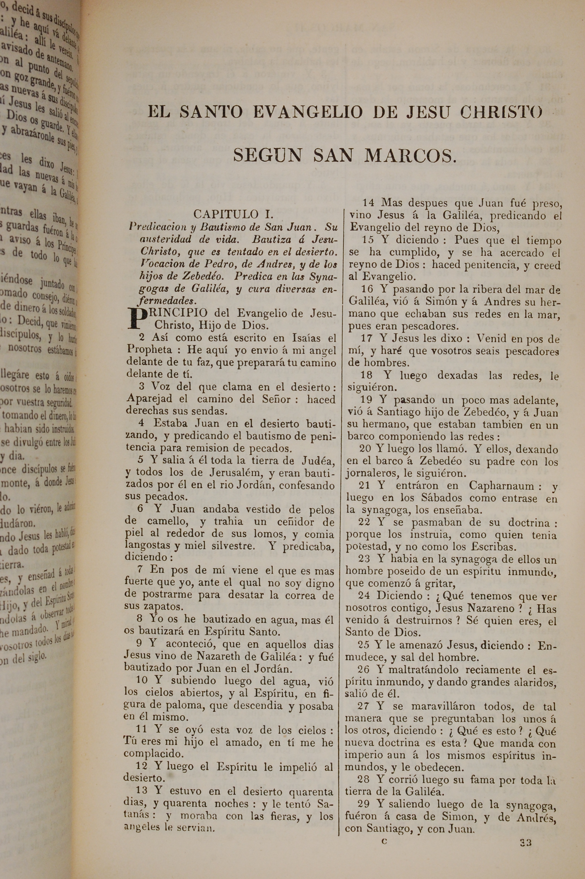 1858年La Biblia 馬可福音 1 章 1 節到 1 章 29 節