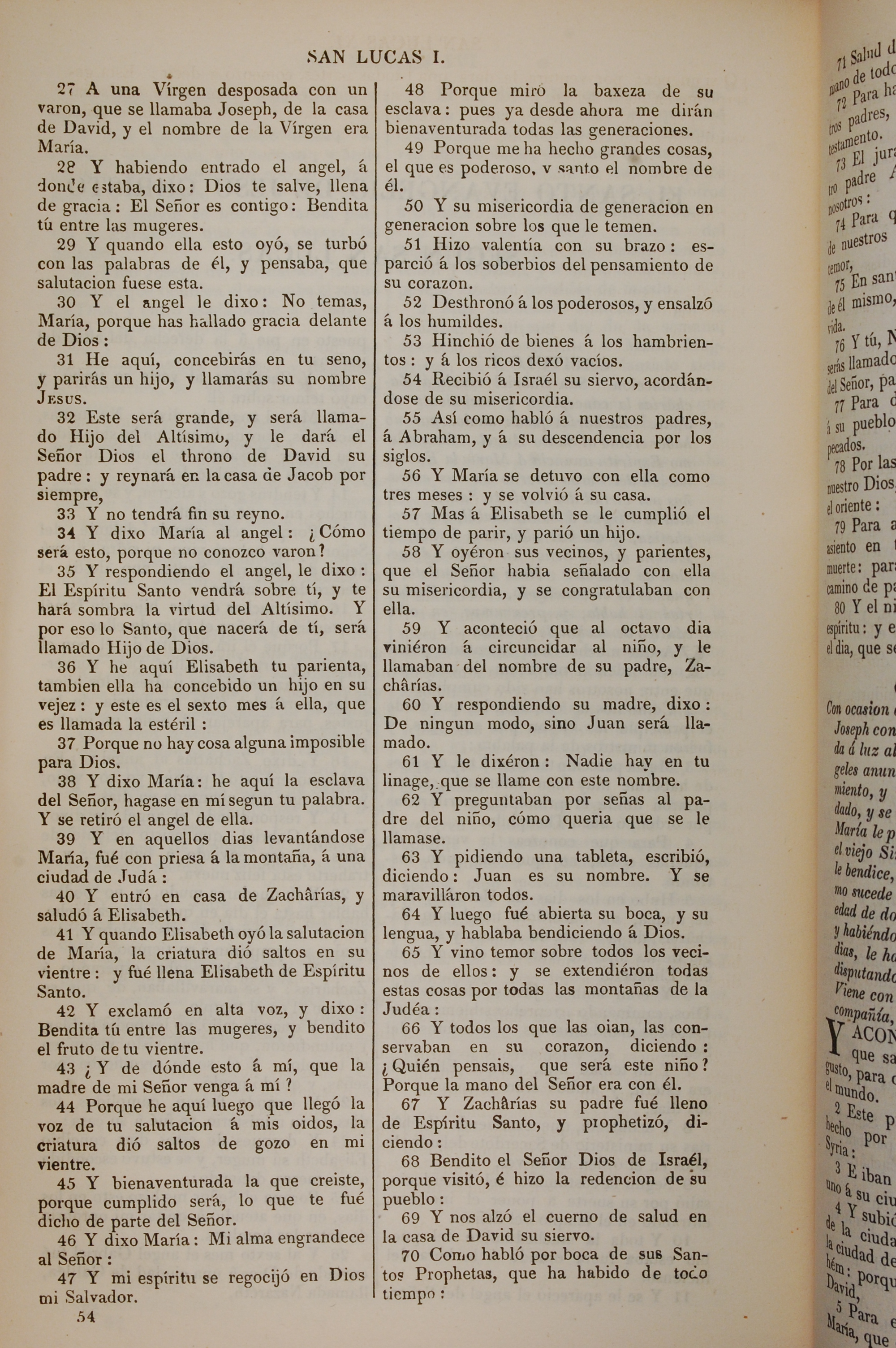 1858年La Biblia 路加福音 1 章 27 節到 1 章 70 節