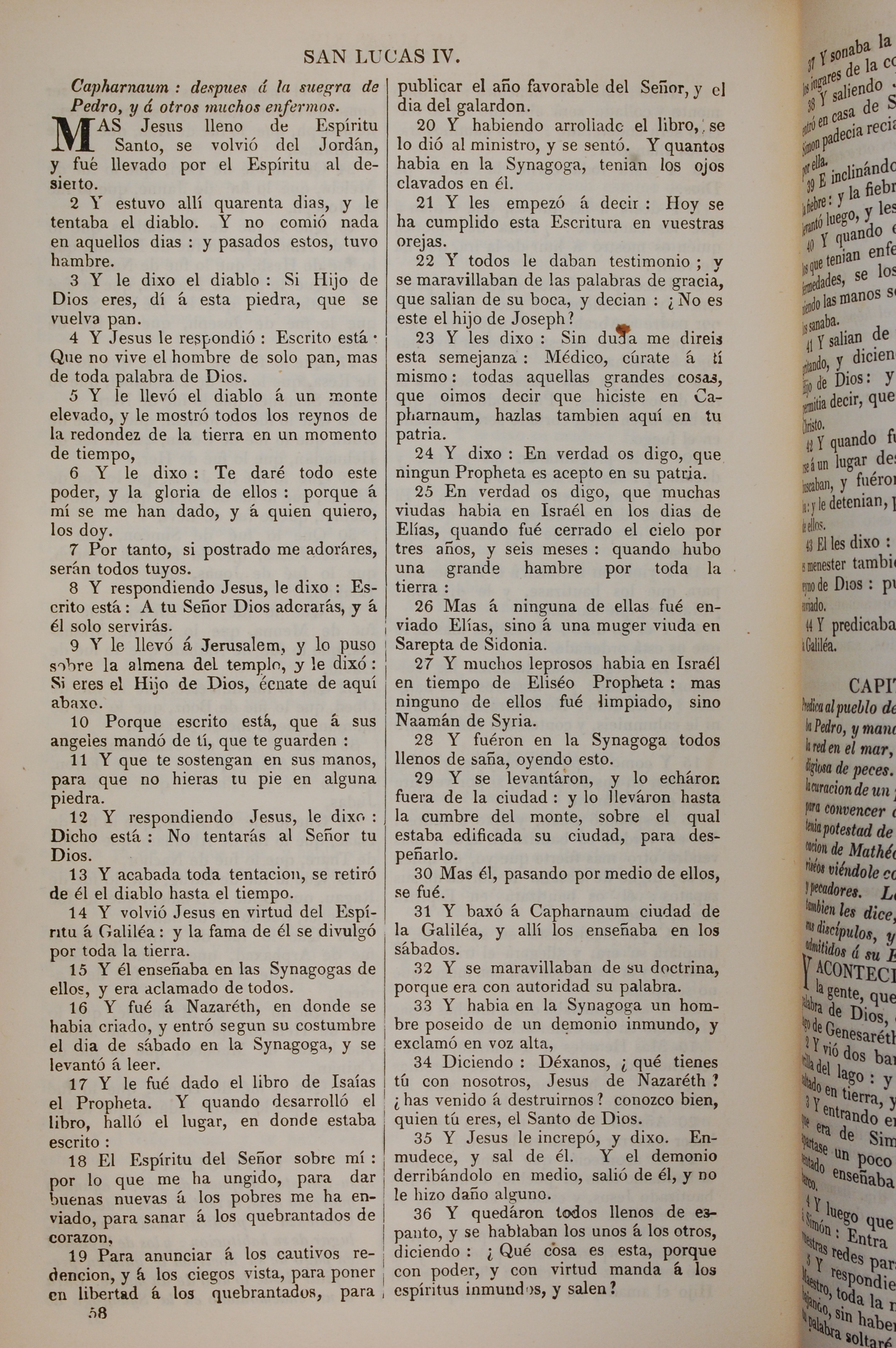 1858年La Biblia 路加福音 4 章 1 節到 4 章 36 節
