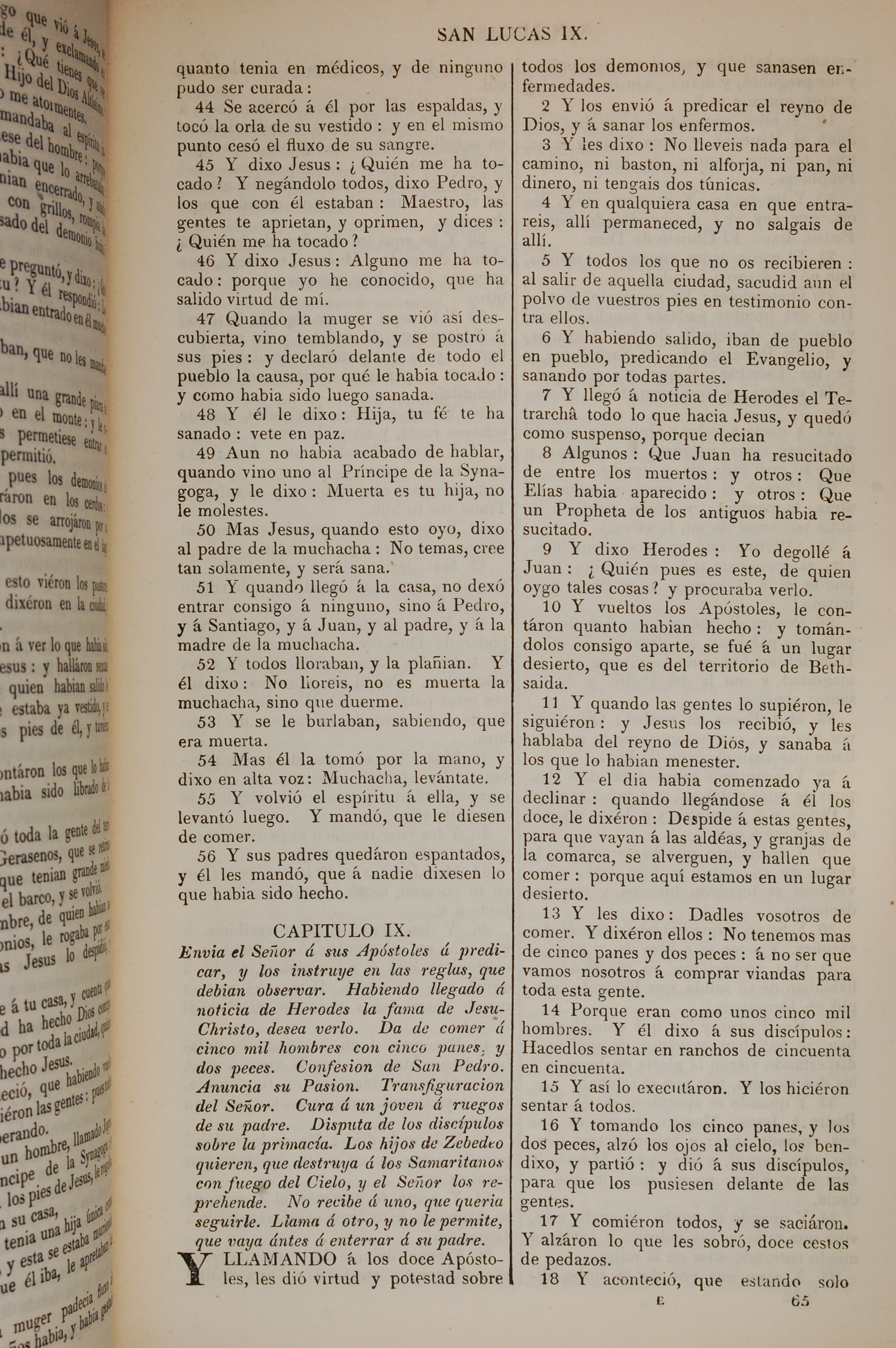 1858年La Biblia 路加福音 8 章 44 節到 9 章 18 節