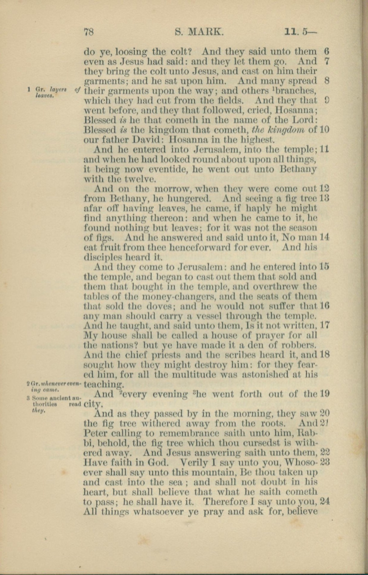 1881年New Testament 馬可福音 11 章 6 節到 11 章 24 節