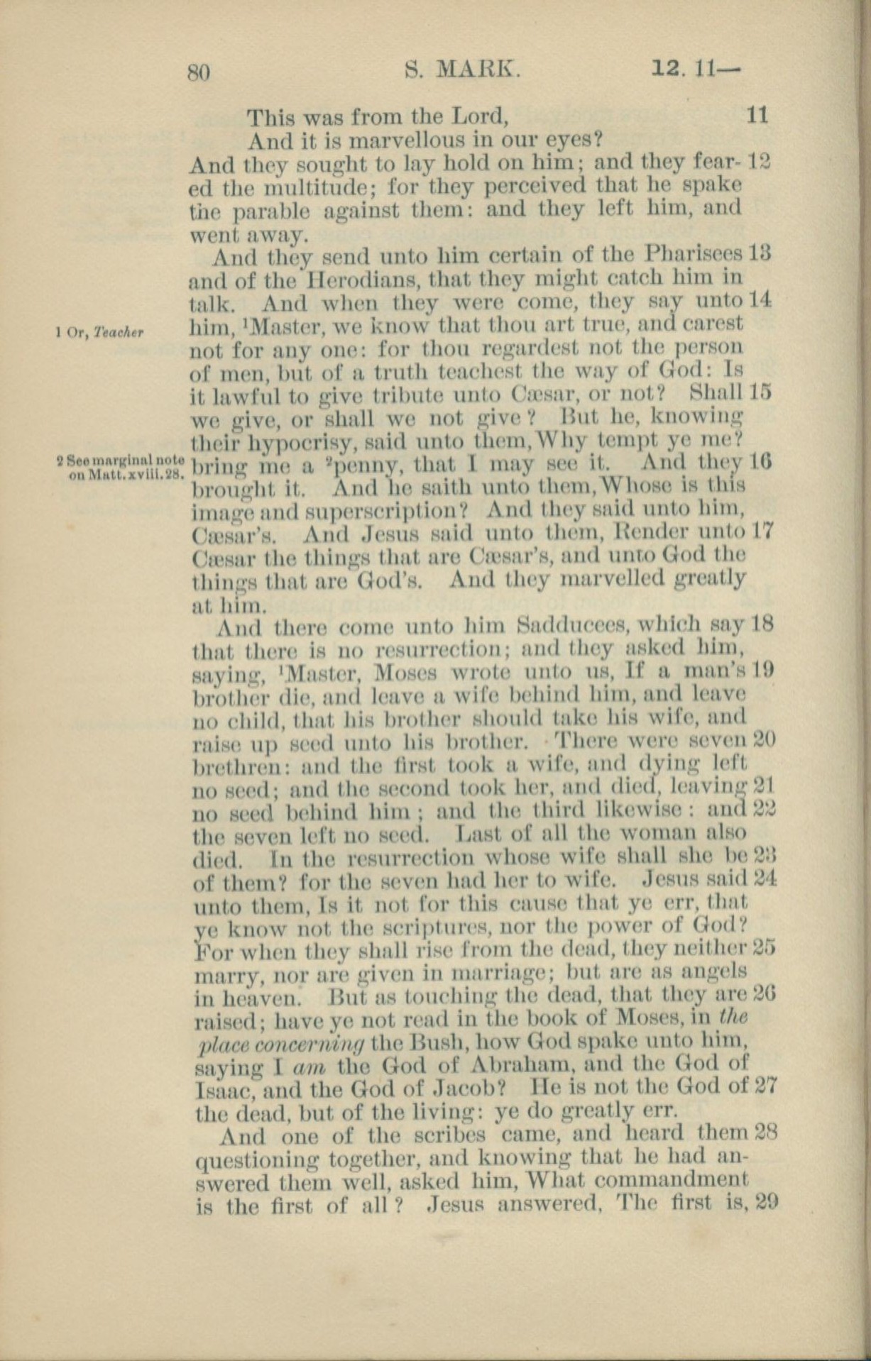 1881年New Testament 馬可福音 12 章 11 節到 12 章 29 節