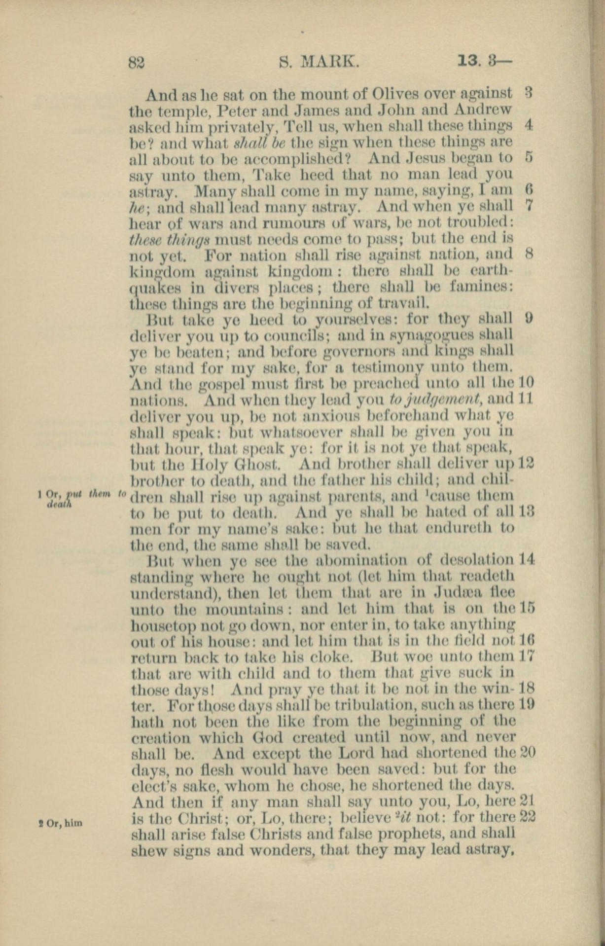 1881年New Testament 馬可福音 13 章 3 節到 13 章 22 節