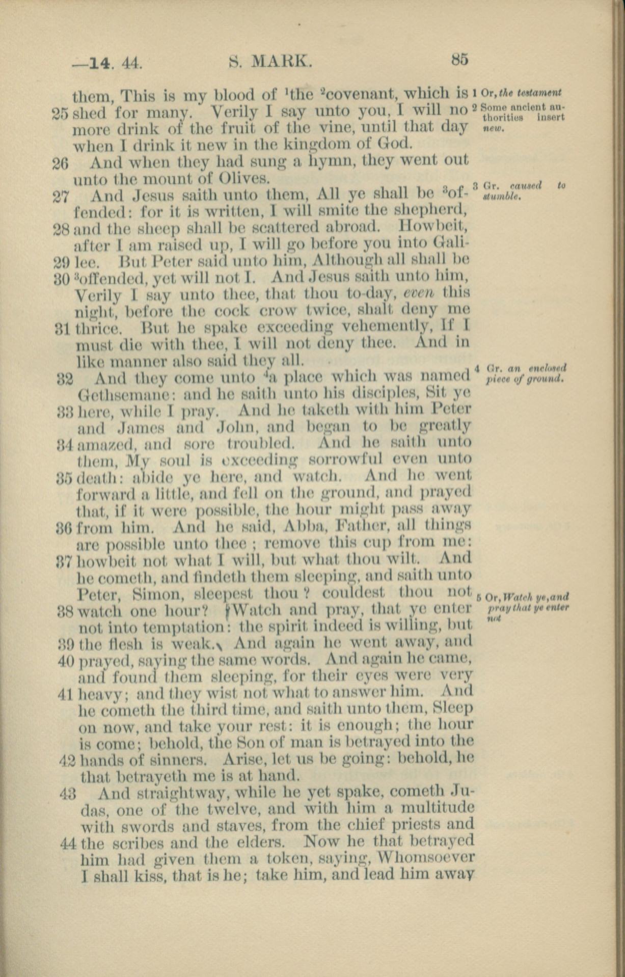 1881年New Testament 馬可福音 14 章 25 節到 14 章 44 節