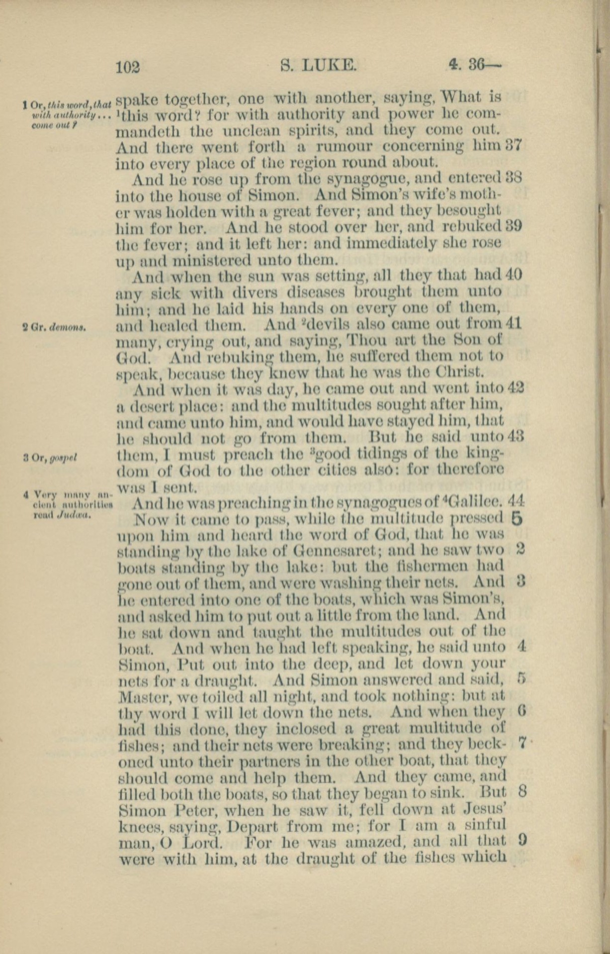 1881年New Testament 路加福音 4 章 37 節到 5 章 9 節