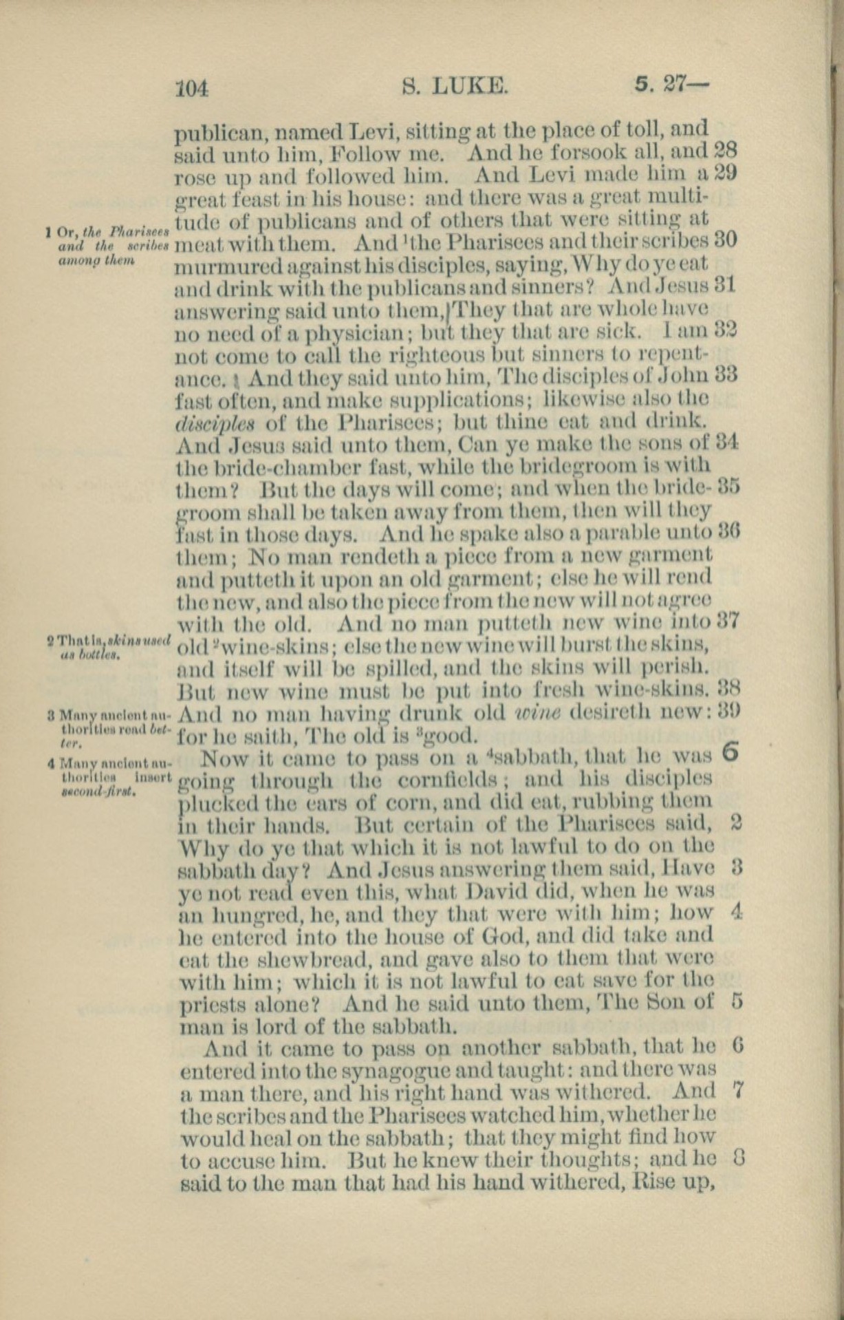 1881年New Testament 路加福音 5 章 28 節到 6 章 8 節
