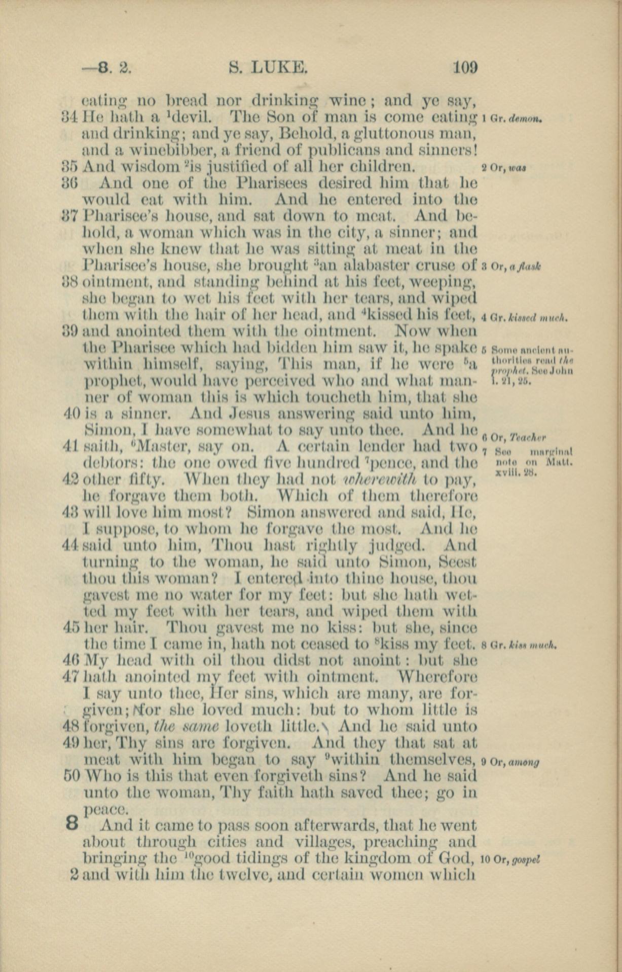 1881年New Testament 路加福音 7 章 34 節到 8 章 2 節
