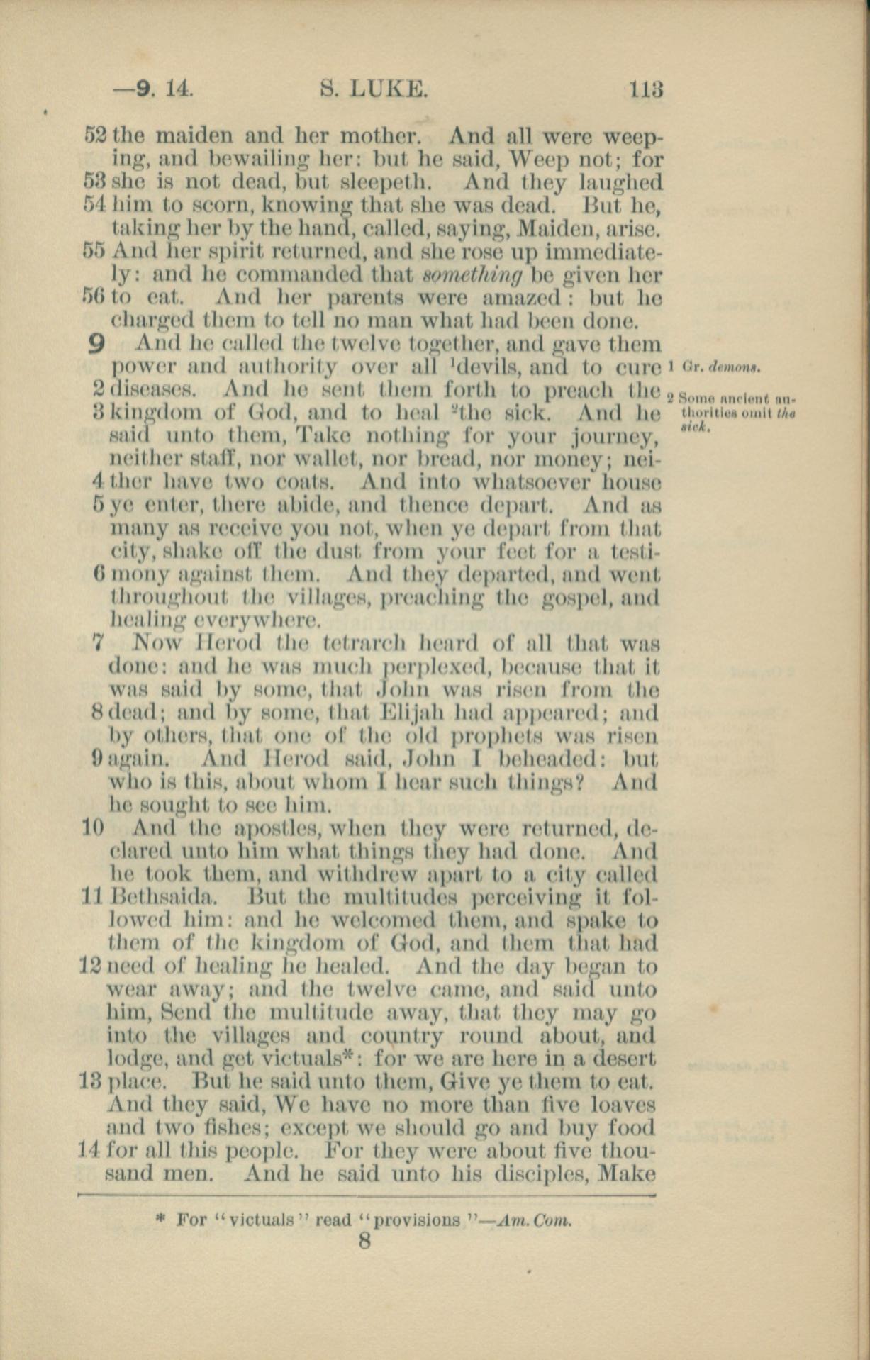 1881年New Testament 路加福音 8 章 52 節到 9 章 14 節