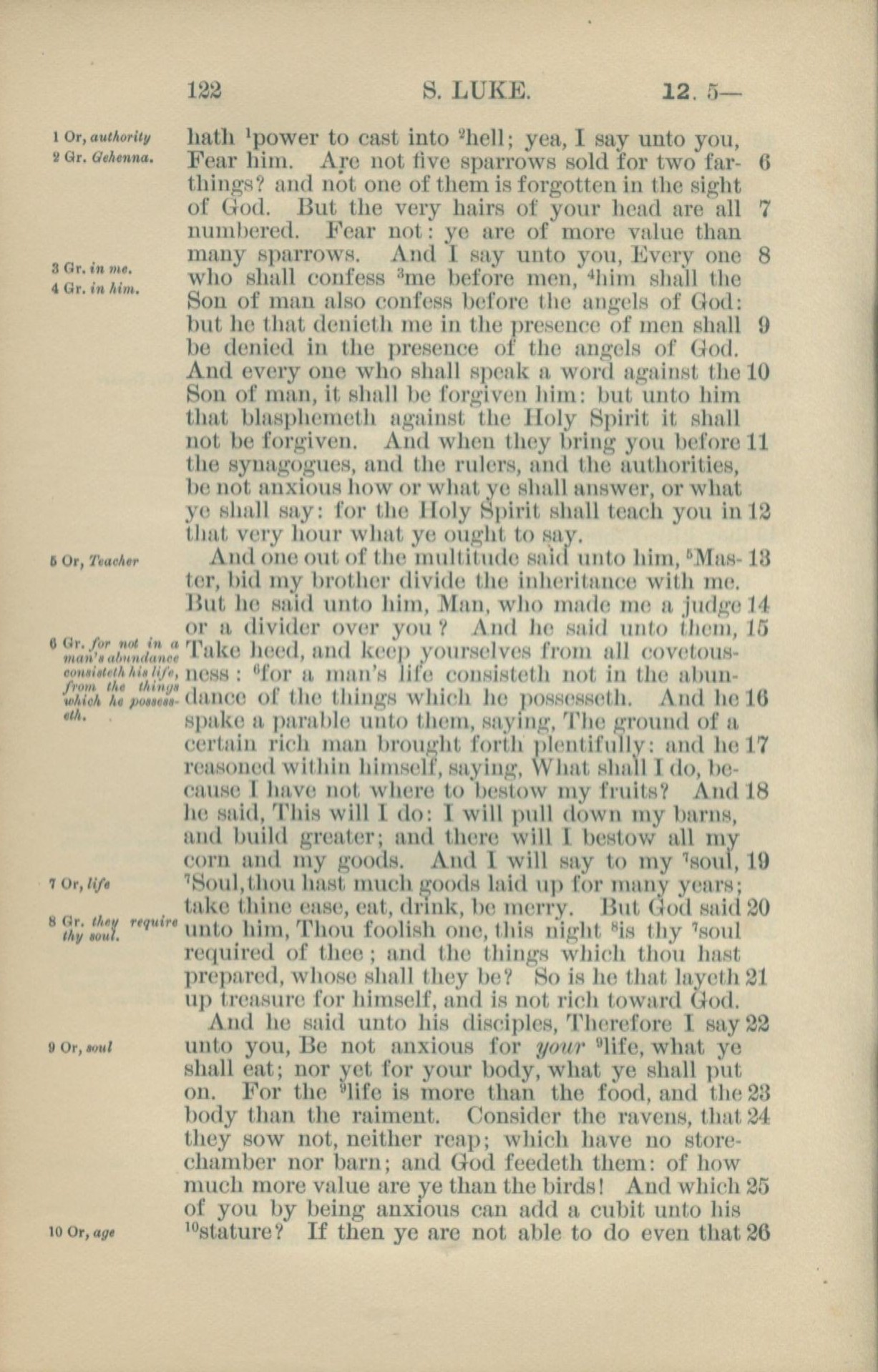1881年New Testament 路加福音 12 章 6 節到 12 章 26 節