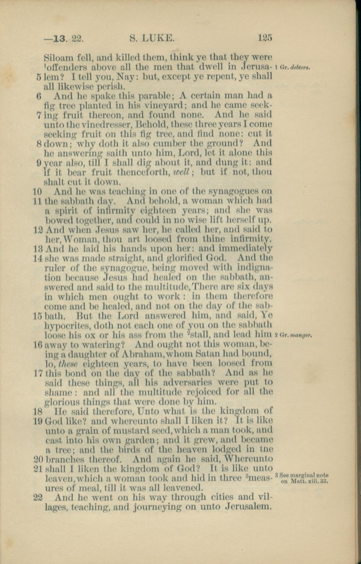 1881年New Testament 路加福音 13 章 5 節到 13 章 22 節