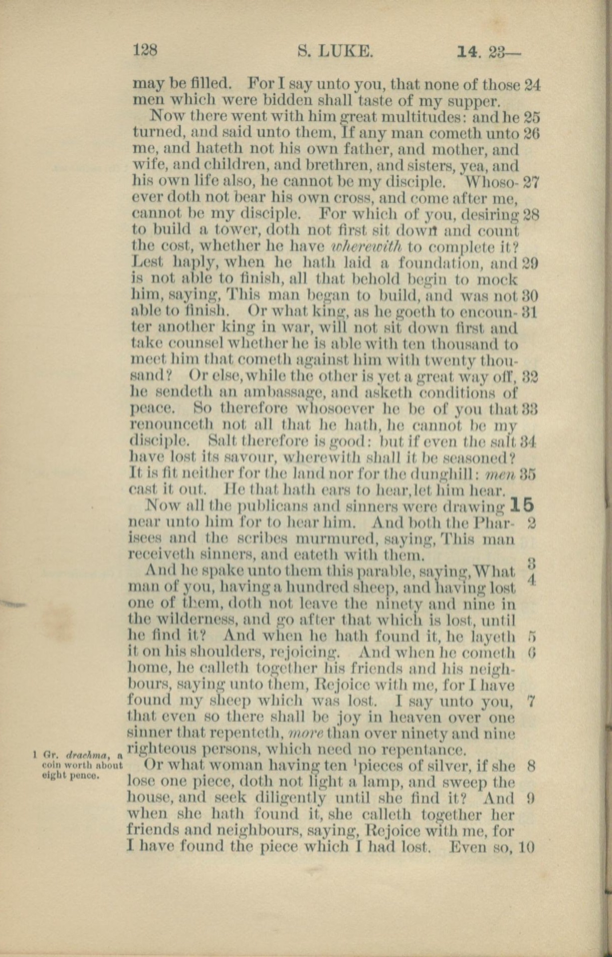 1881年New Testament 路加福音 14 章 24 節到 15 章 10 節