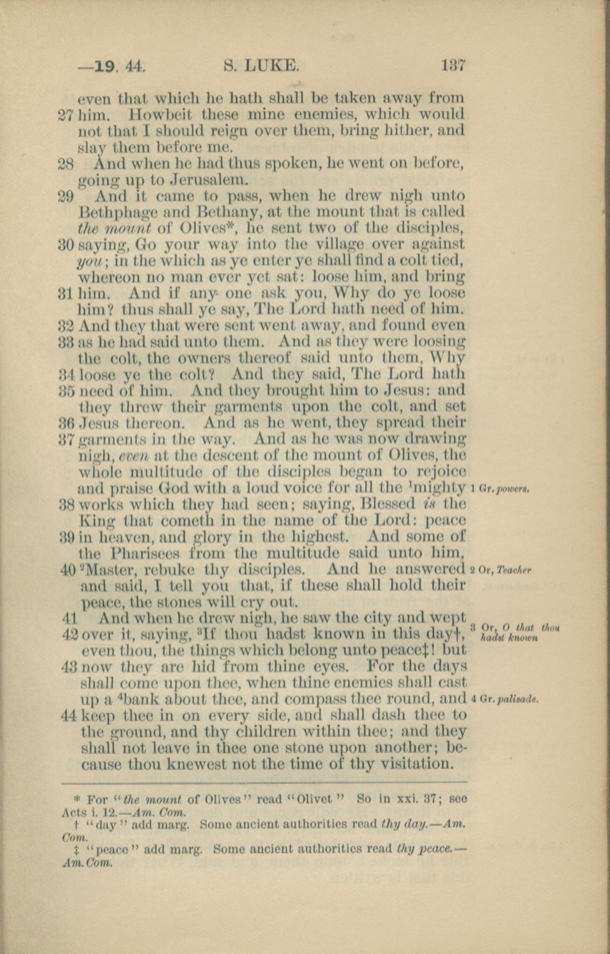 1881年New Testament 路加福音 19 章 27 節到 19 章 44 節