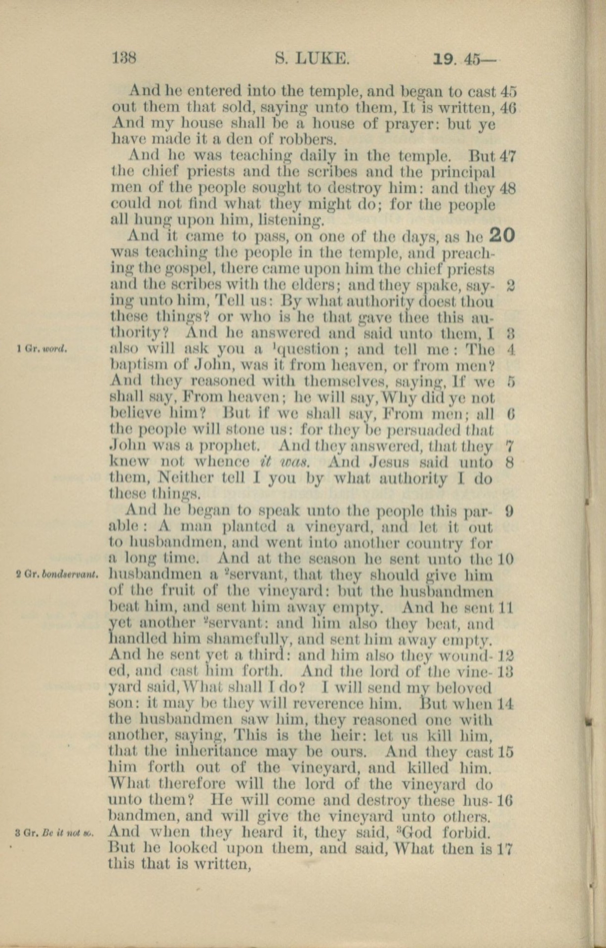 1881年New Testament 路加福音 19 章 45 節到 20 章 17 節