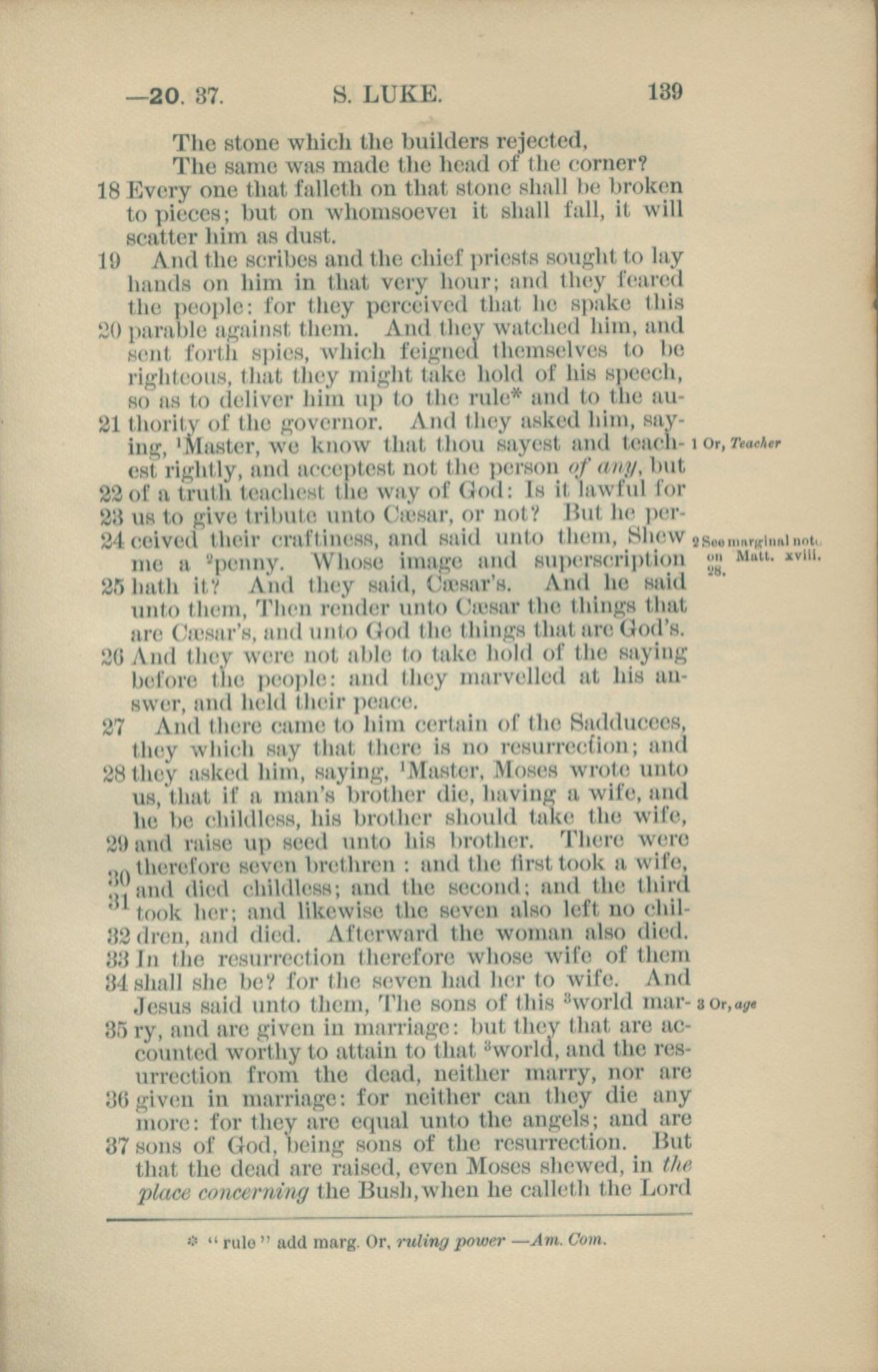 1881年New Testament 路加福音 20 章 18 節到 20 章 37 節