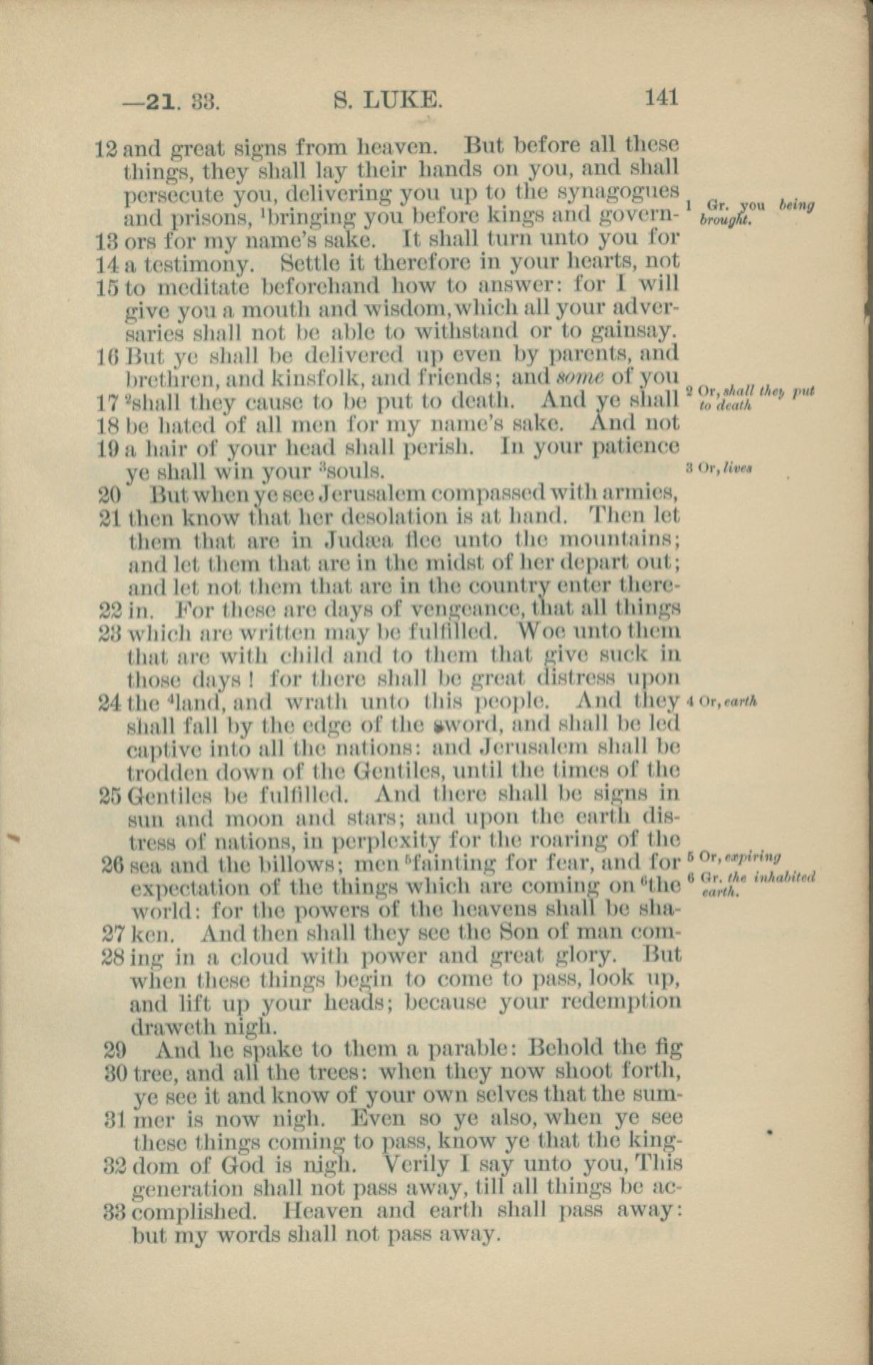 1881年New Testament 路加福音 21 章 12 節到 21 章 33 節