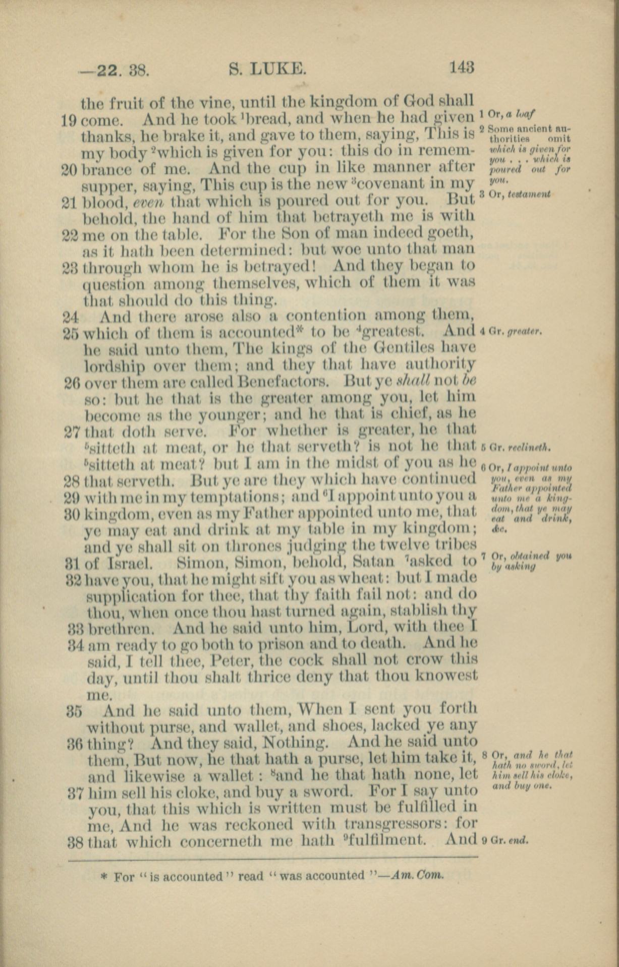 1881年New Testament 路加福音 22 章 19 節到 22 章 38 節