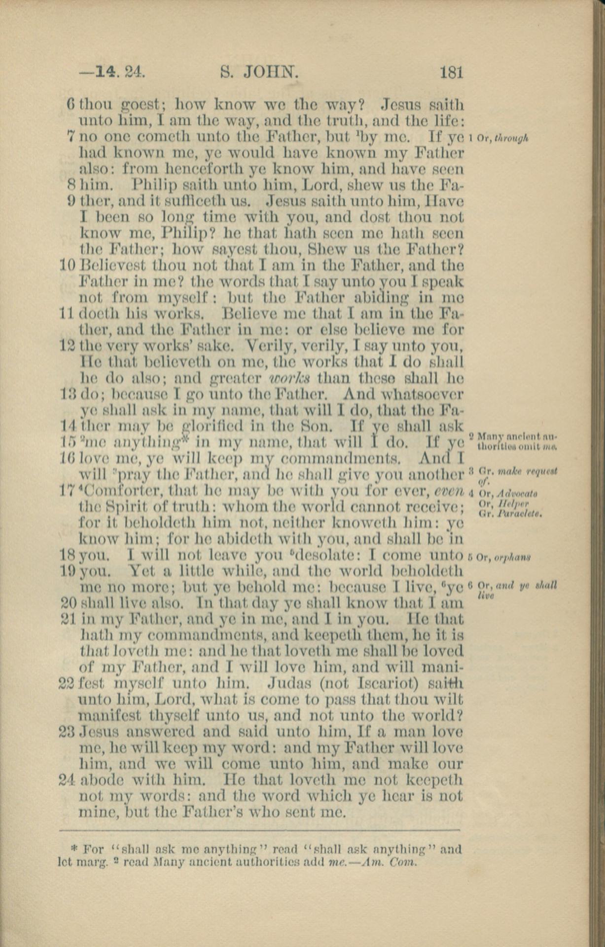 1881年New Testament 約翰福音 14 章 6 節到 14 章 24 節