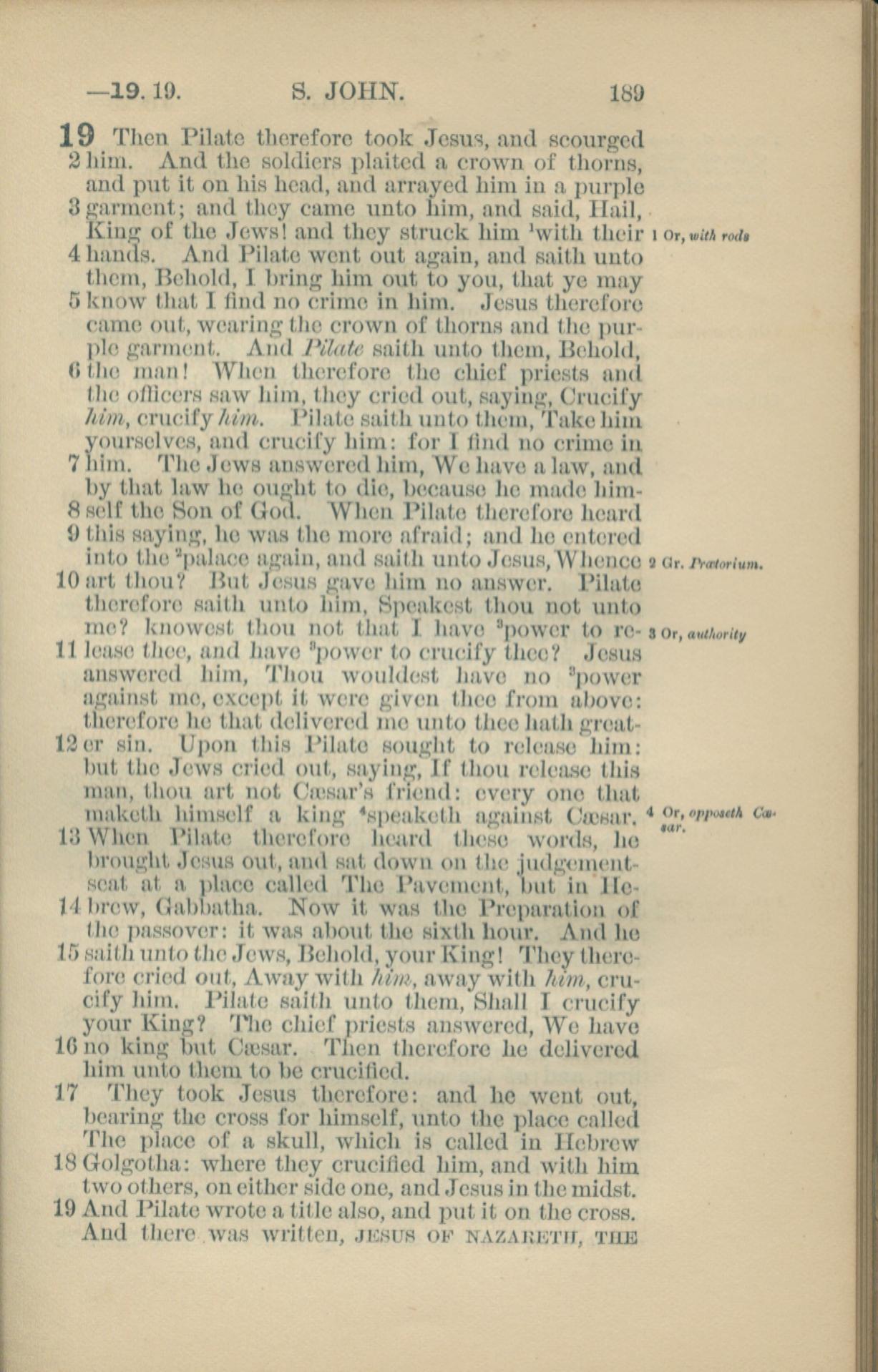 1881年New Testament 約翰福音 19 章 1 節到 19 章 19 節