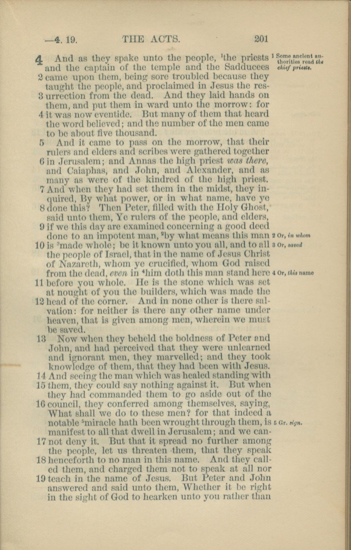 1881年New Testament 使徒行傳 4 章 1 節到 4 章 19 節