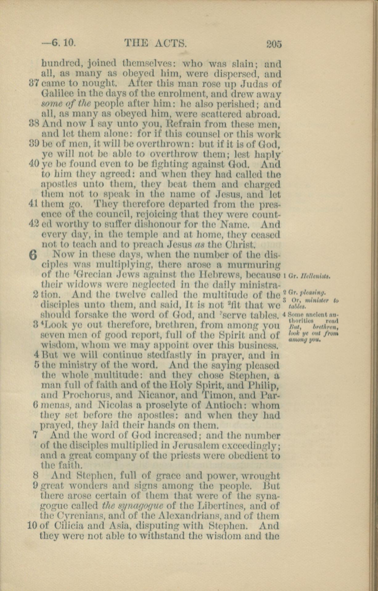 1881年New Testament 使徒行傳 5 章 37 節到 6 章 10 節