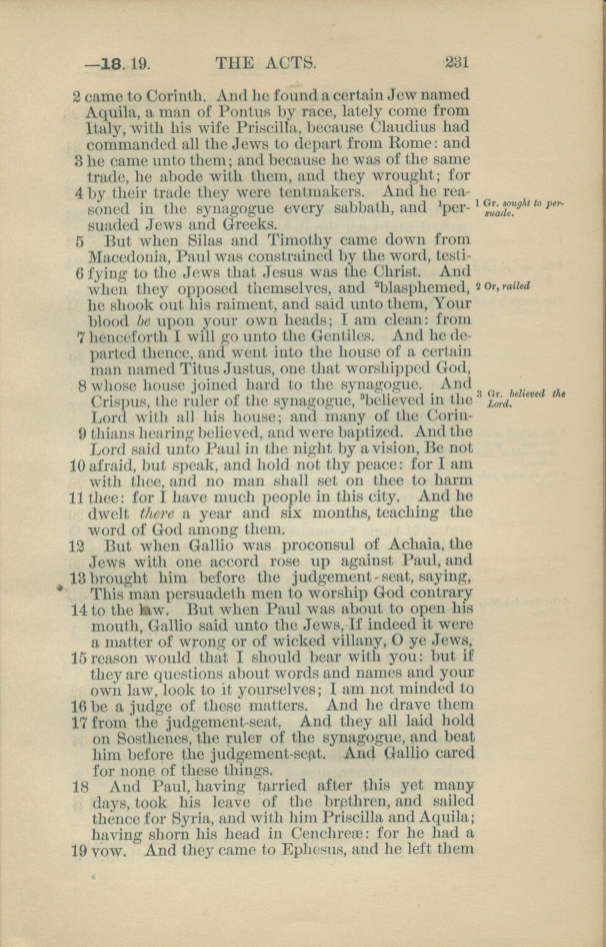 1881年New Testament 使徒行傳 18 章 2 節到 18 章 19 節