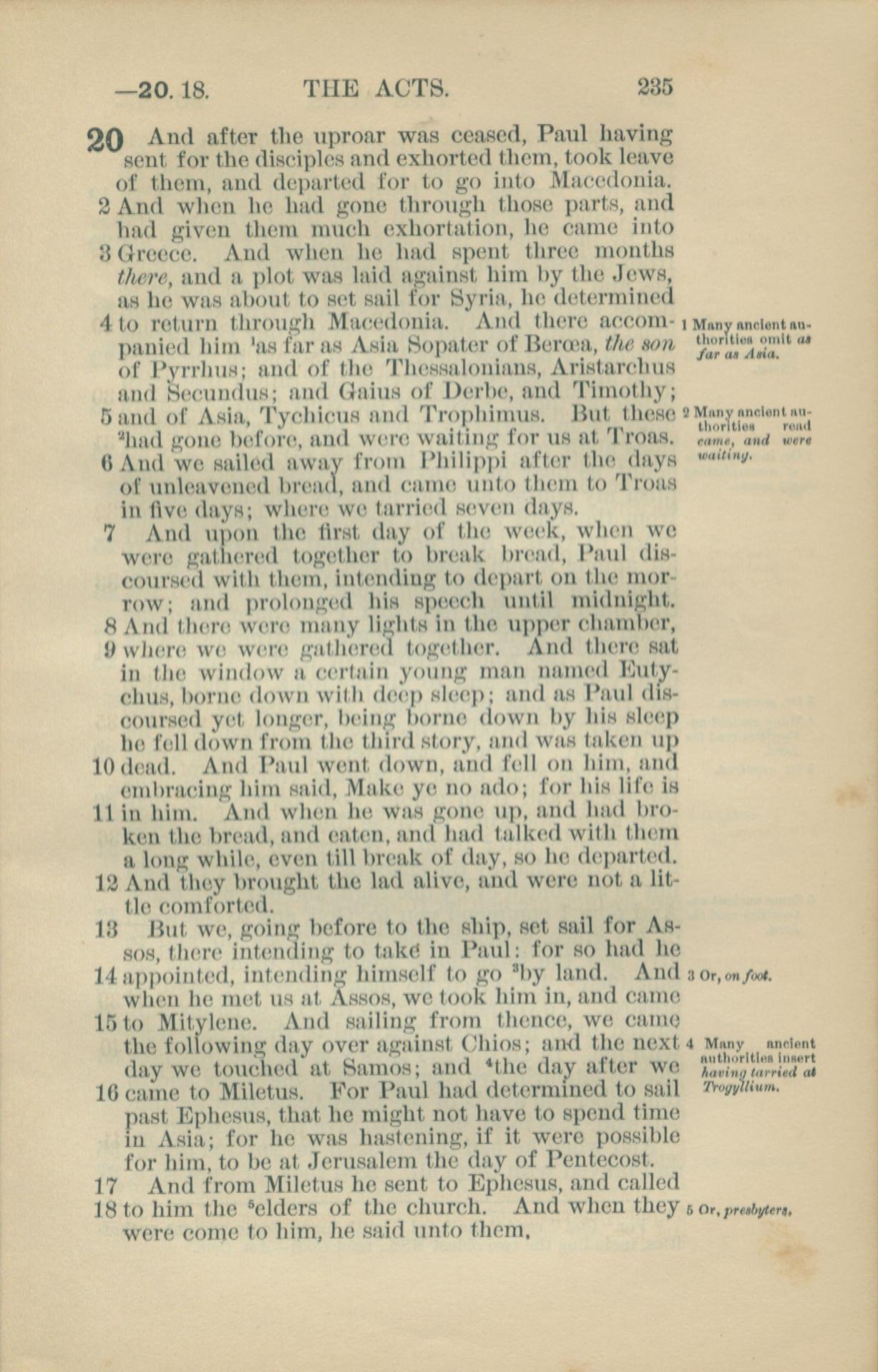 1881年New Testament 使徒行傳 20 章 1 節到 20 章 18 節
