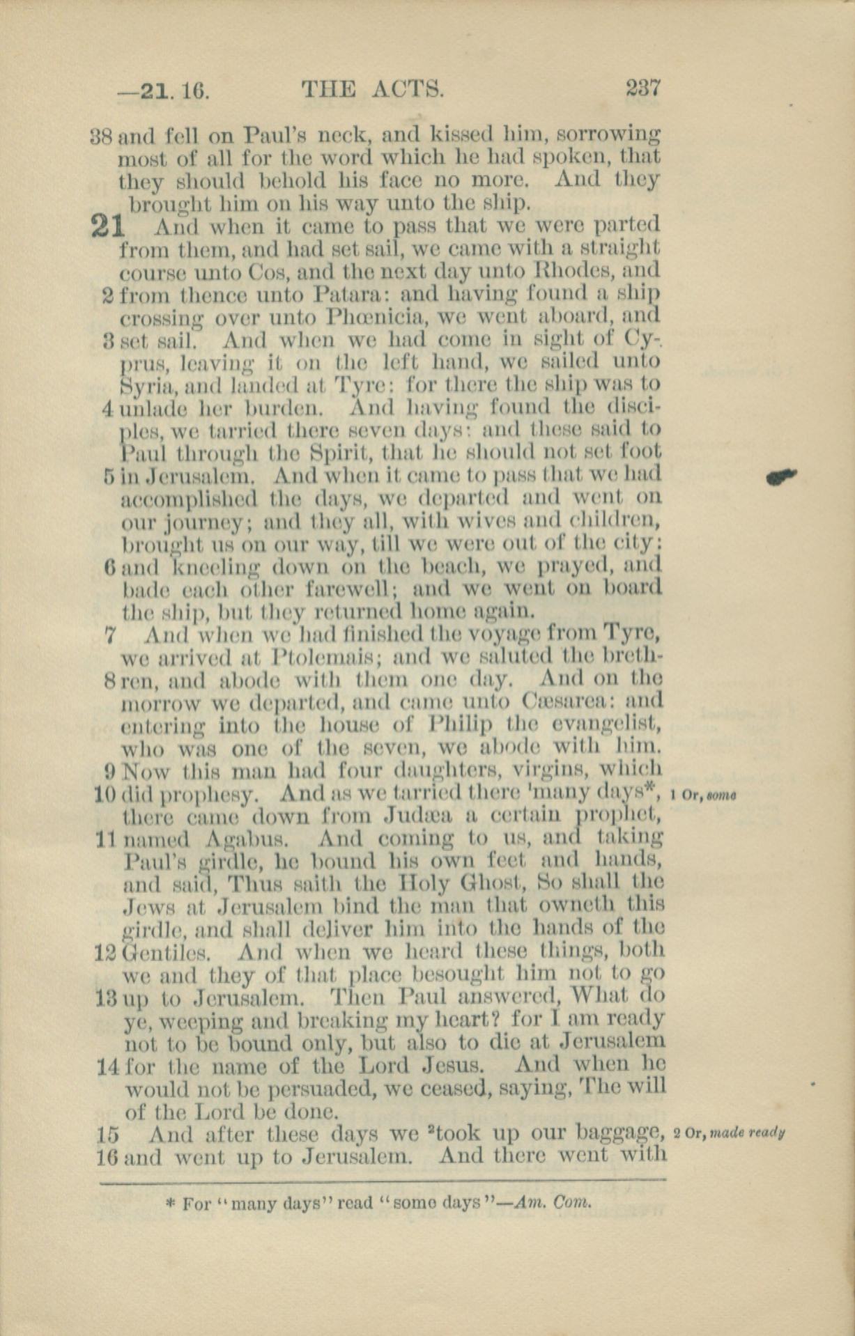 1881年New Testament 使徒行傳 20 章 38 節到 21 章 16 節