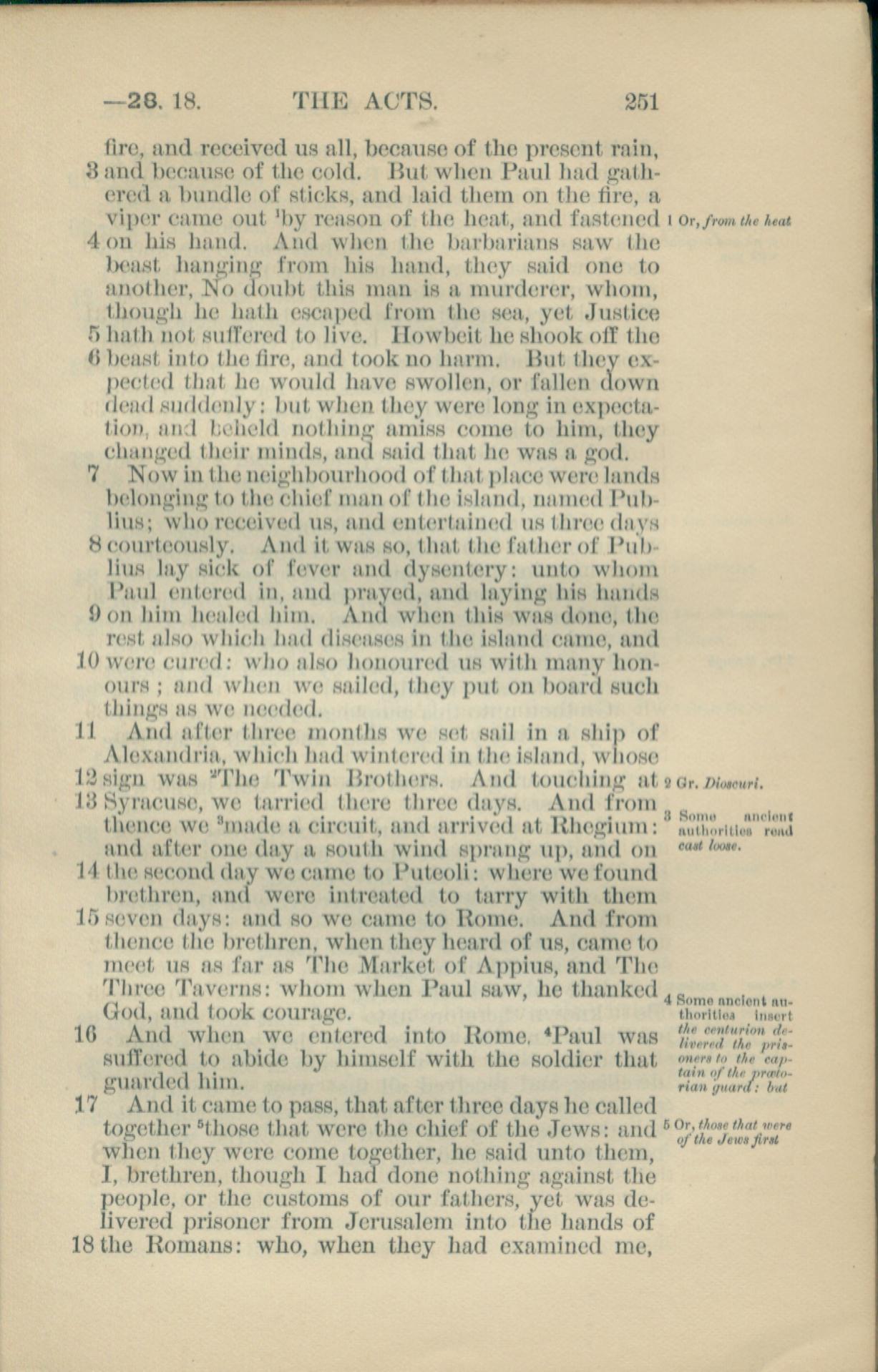 1881年New Testament 使徒行傳 28 章 3 節到 28 章 18 節