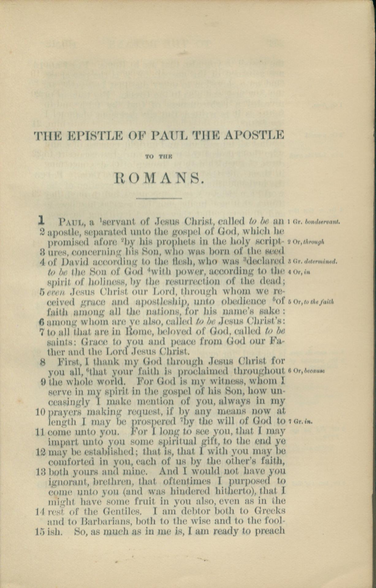 1881年New Testament 羅馬書 1 章 1 節到 1 章 15 節