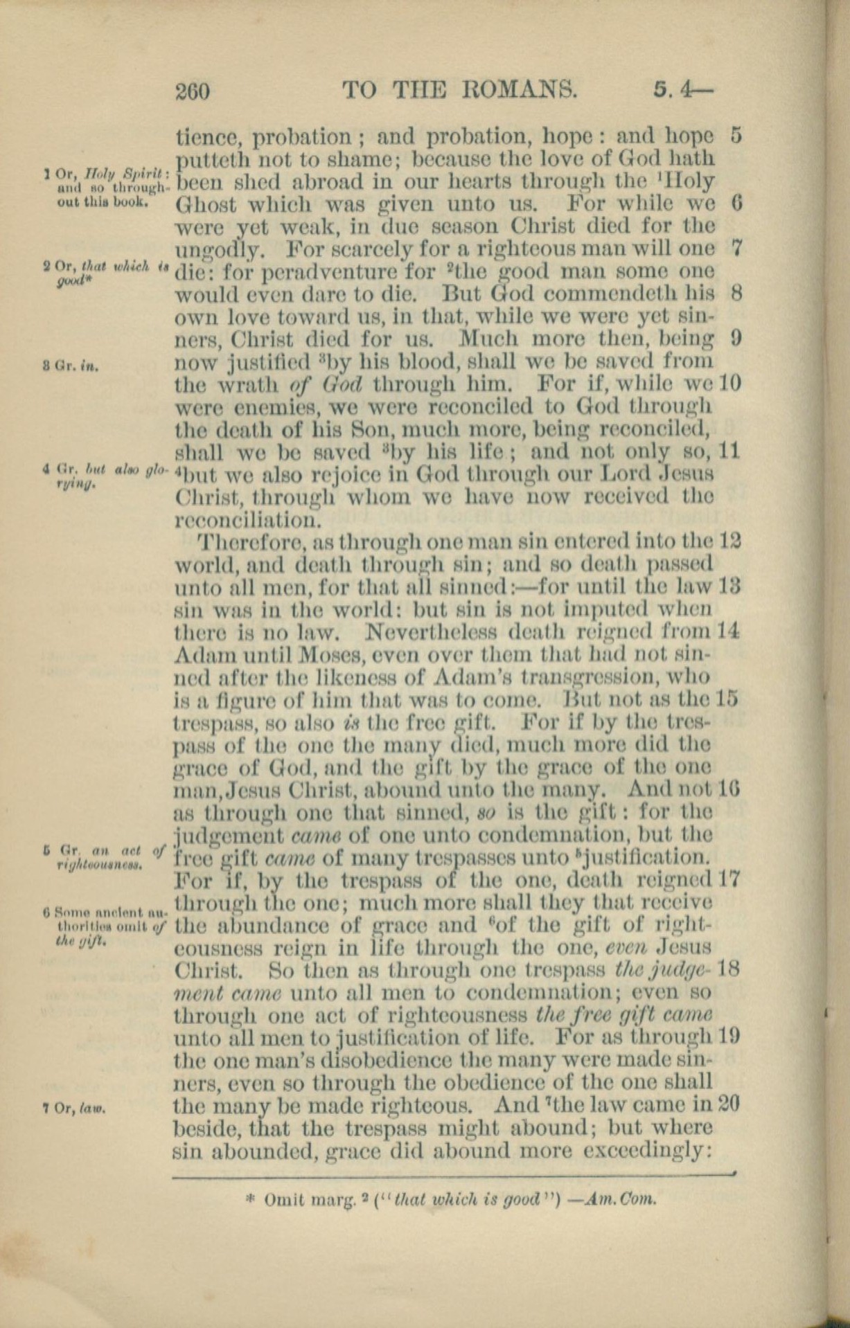 1881年New Testament 羅馬書 5 章 5 節到 5 章 20 節