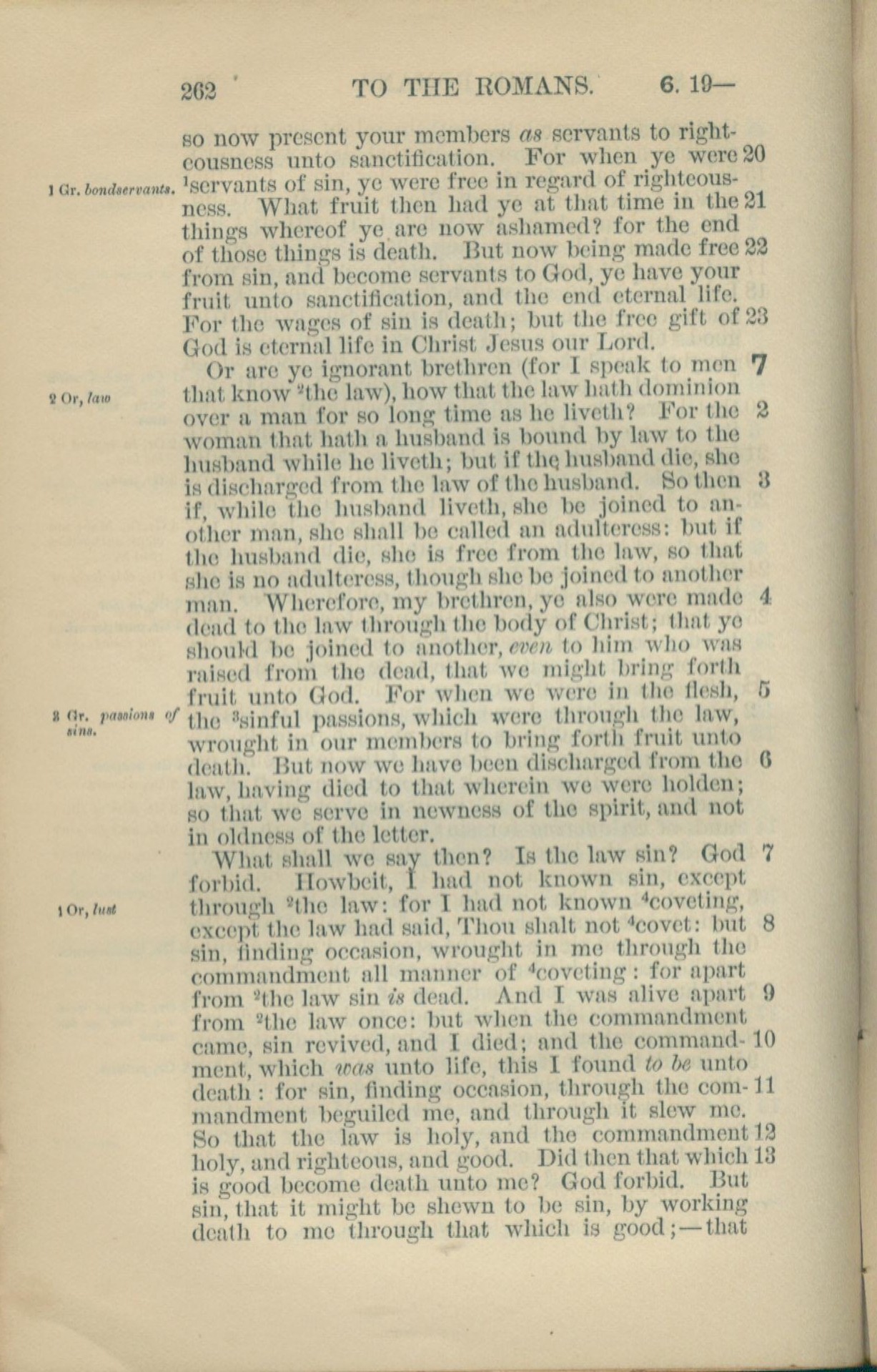 1881年New Testament 羅馬書 6 章 20 節到 7 章 13 節