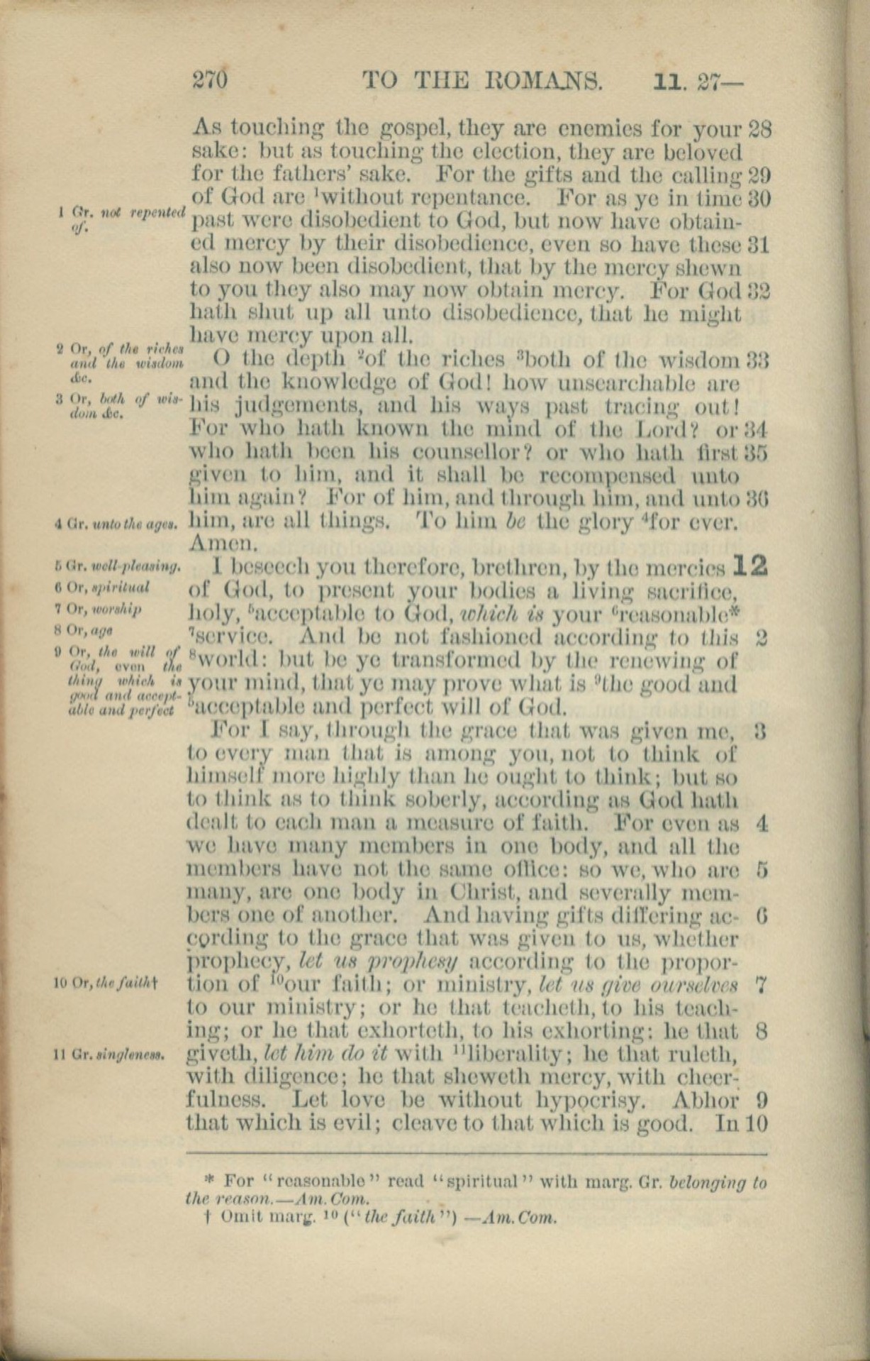 1881年New Testament 羅馬書 11 章 28 節到 12 章 10 節
