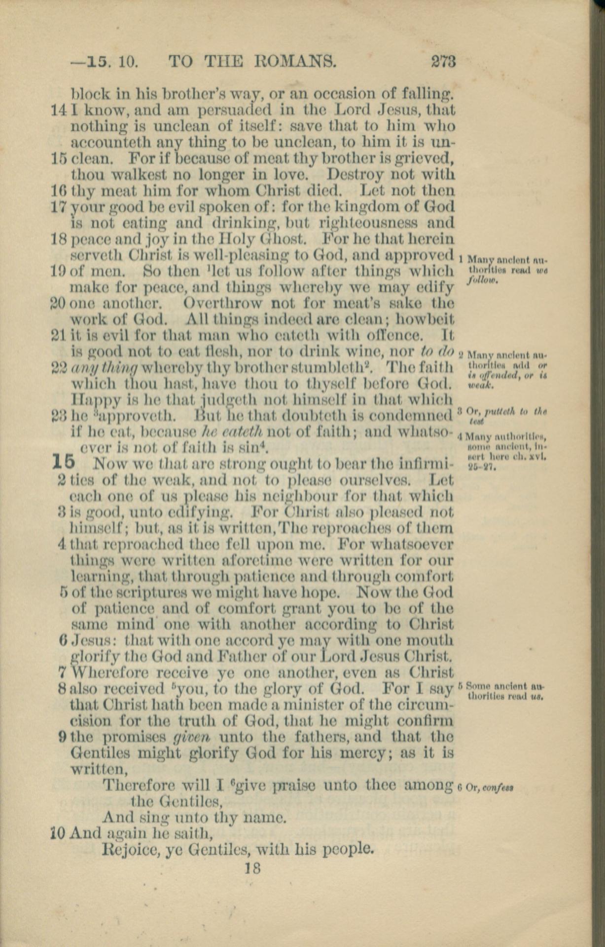 1881年New Testament 羅馬書 14 章 14 節到 15 章 10 節