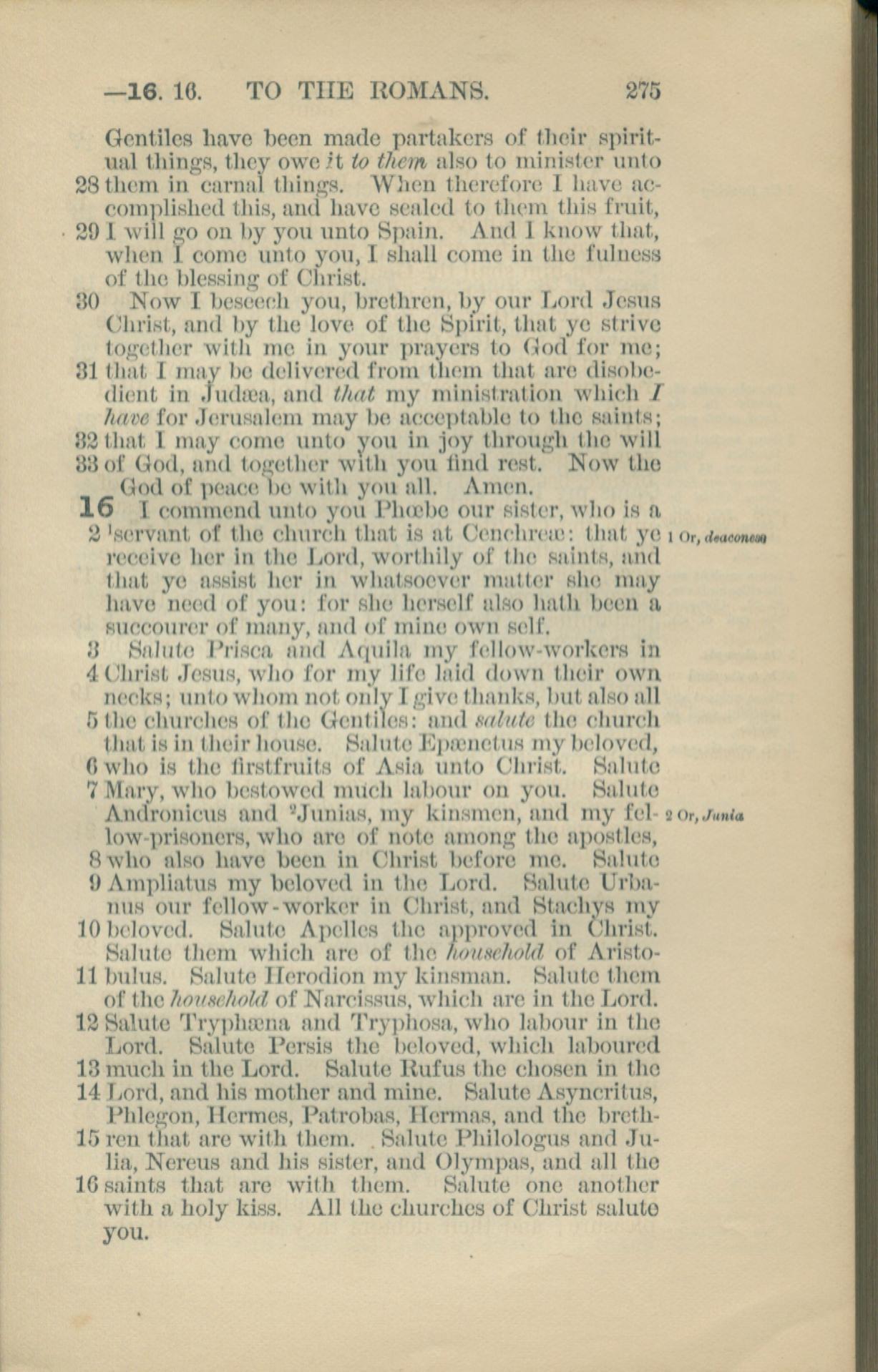 1881年New Testament 羅馬書 15 章 28 節到 16 章 16 節