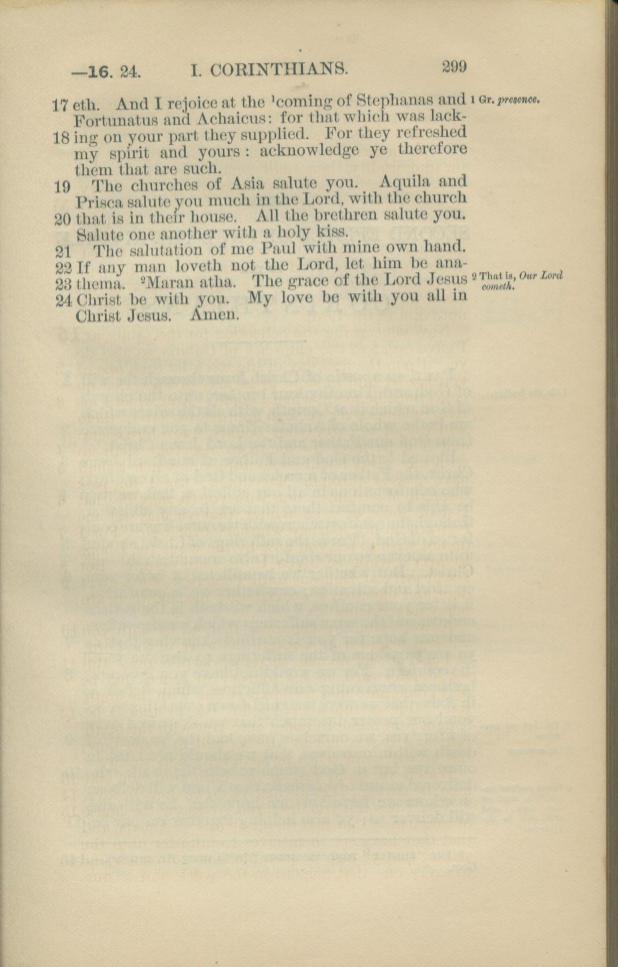 1881年New Testament 哥林多前書 16 章 17 節到 16 章 24 節