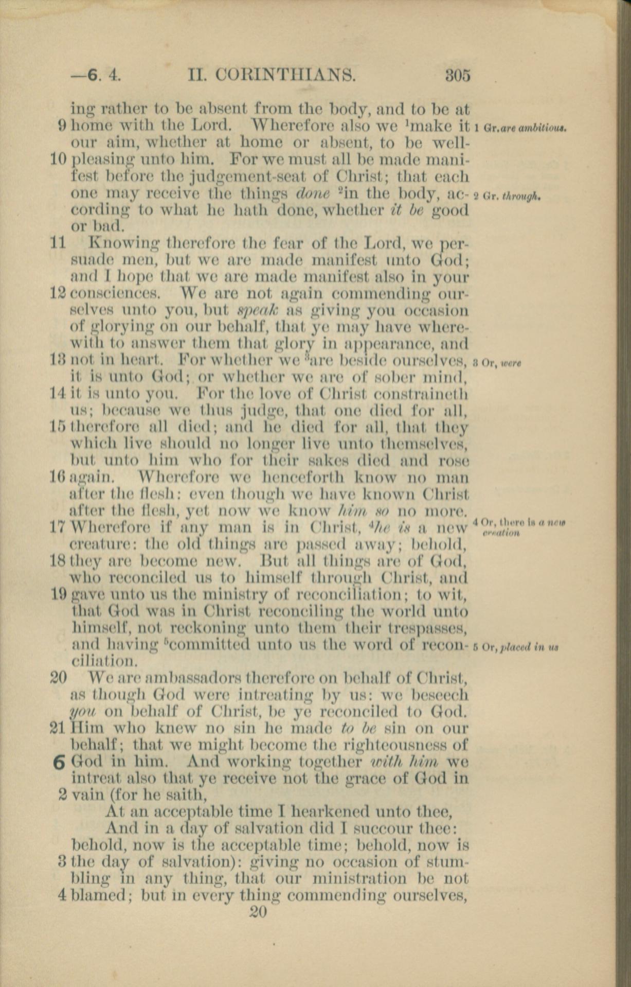 1881年New Testament 哥林多後書 5 章 9 節到 6 章 4 節