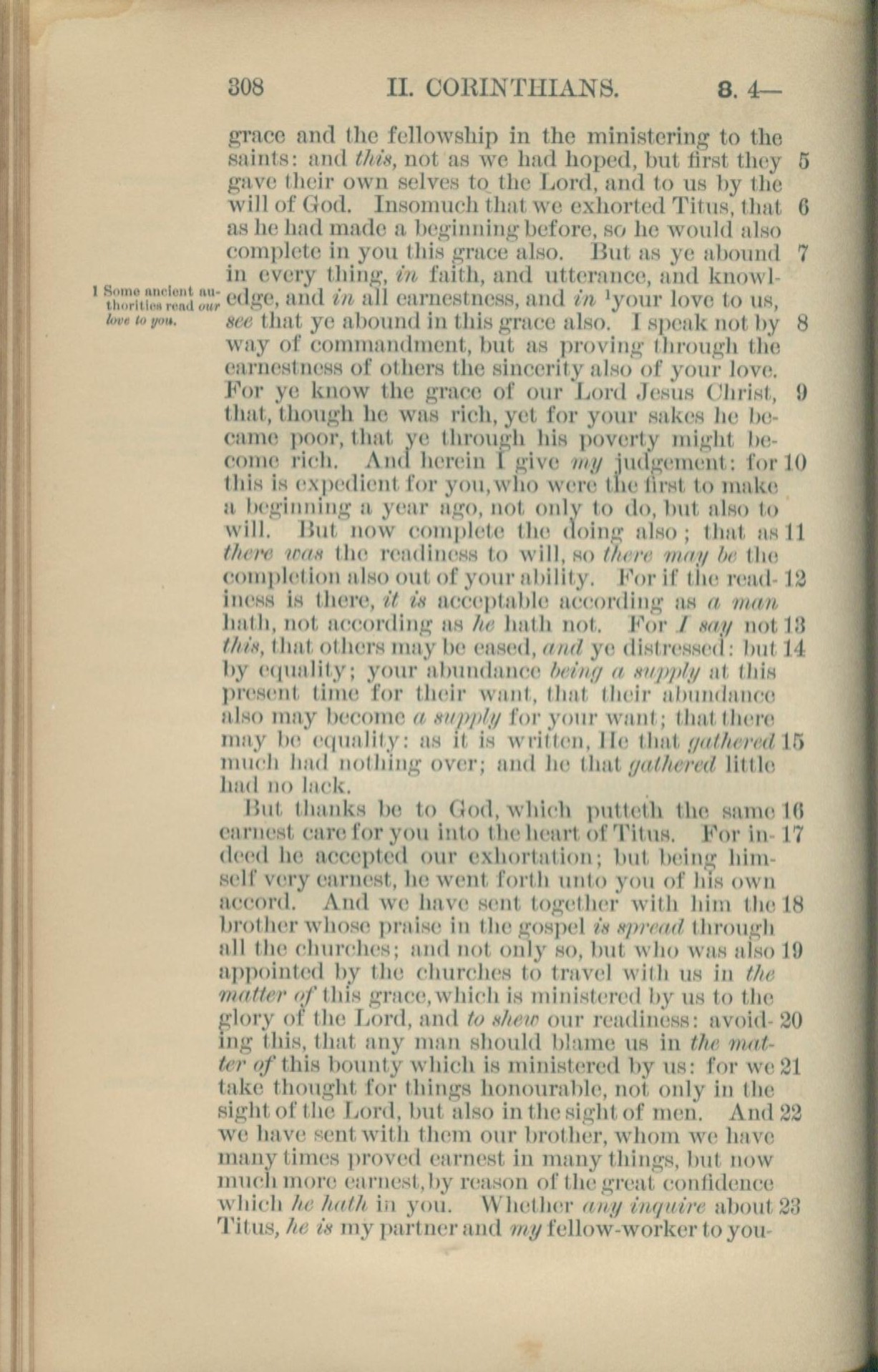 1881年New Testament 哥林多後書 8 章 5 節到 8 章 23 節