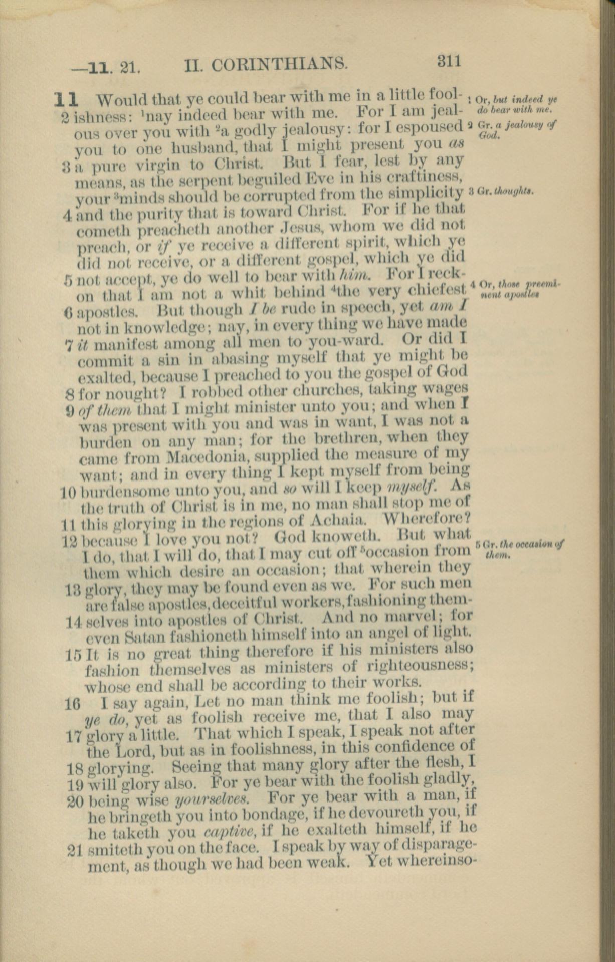 1881年New Testament 哥林多後書 11 章 1 節到 11 章 21 節