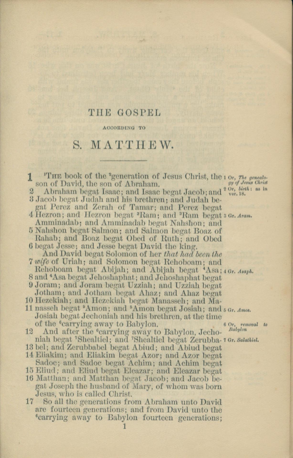 1881年New Testament 馬太福音 1 章 1 節到 1 章 17 節