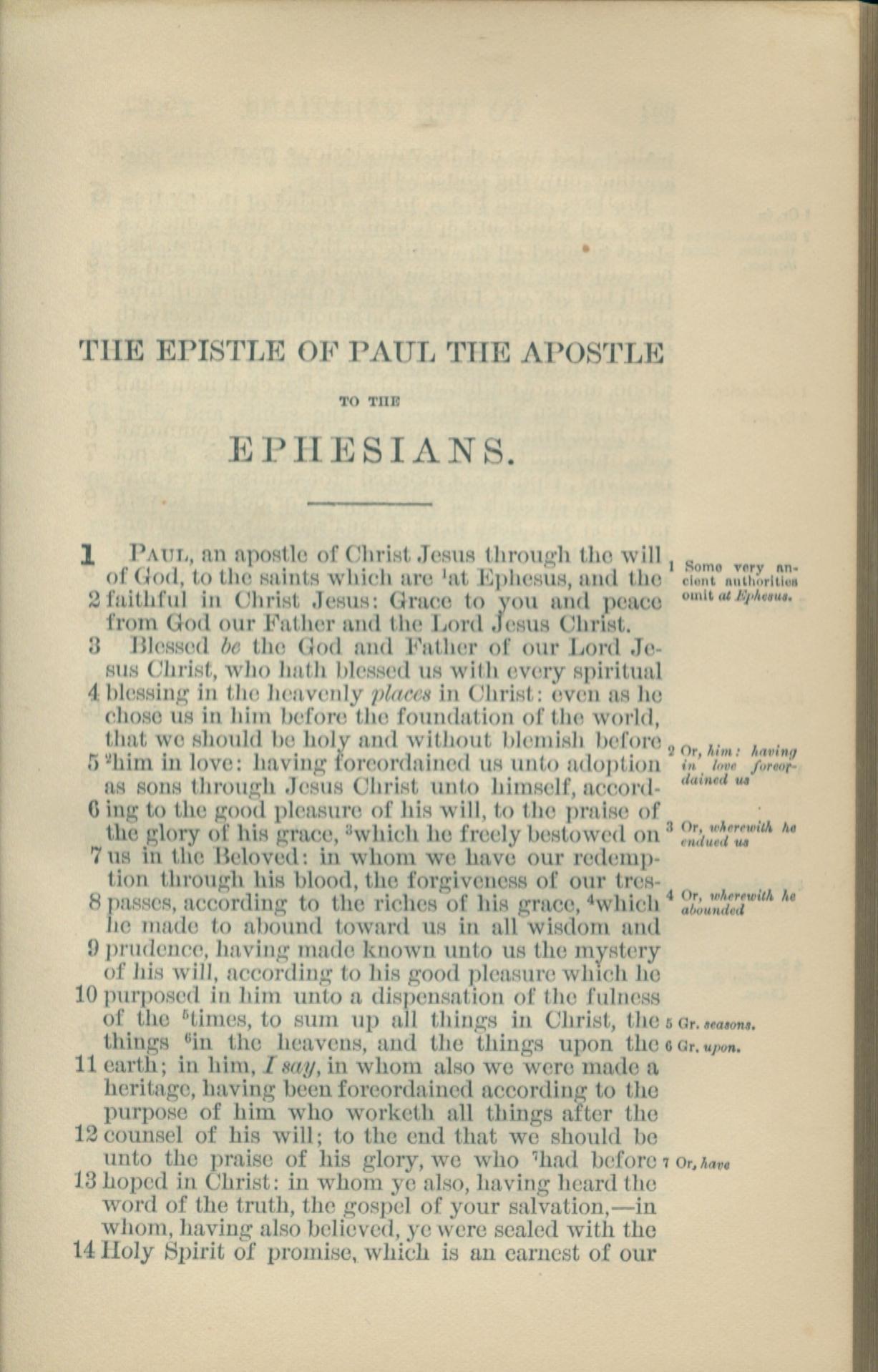 1881年New Testament 以弗所書 1 章 1 節到 1 章 14 節