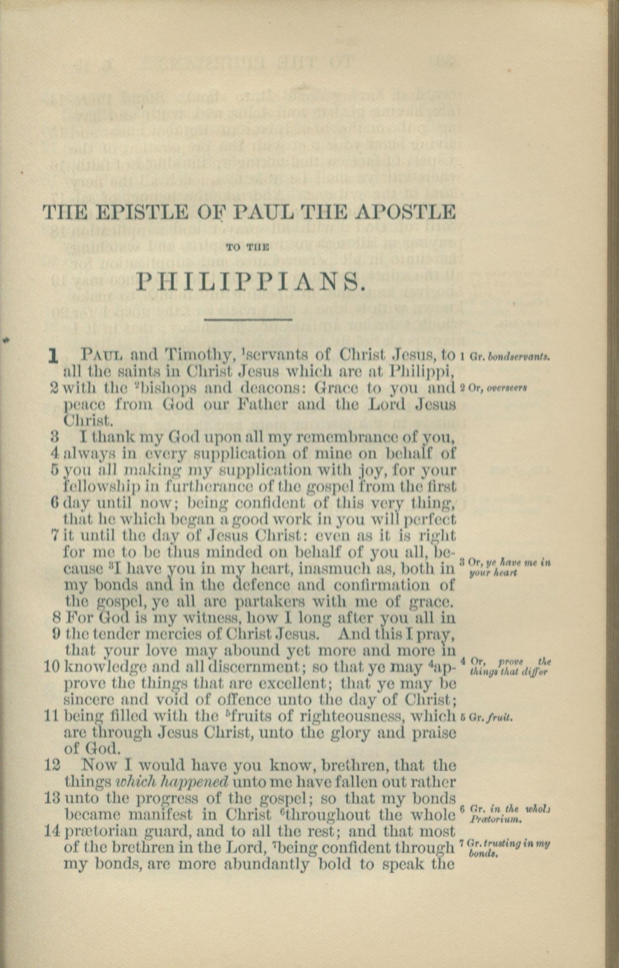 1881年New Testament 腓立比書 1 章 1 節到 1 章 14 節