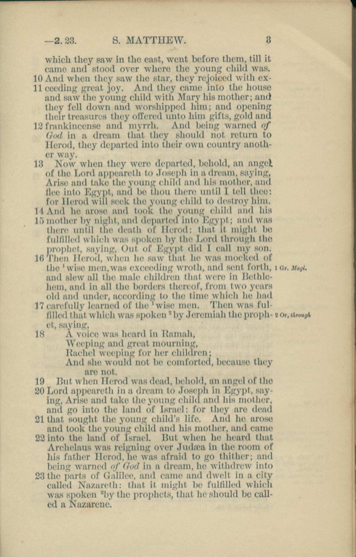 1881年New Testament 馬太福音 2 章 10 節到 2 章 23 節