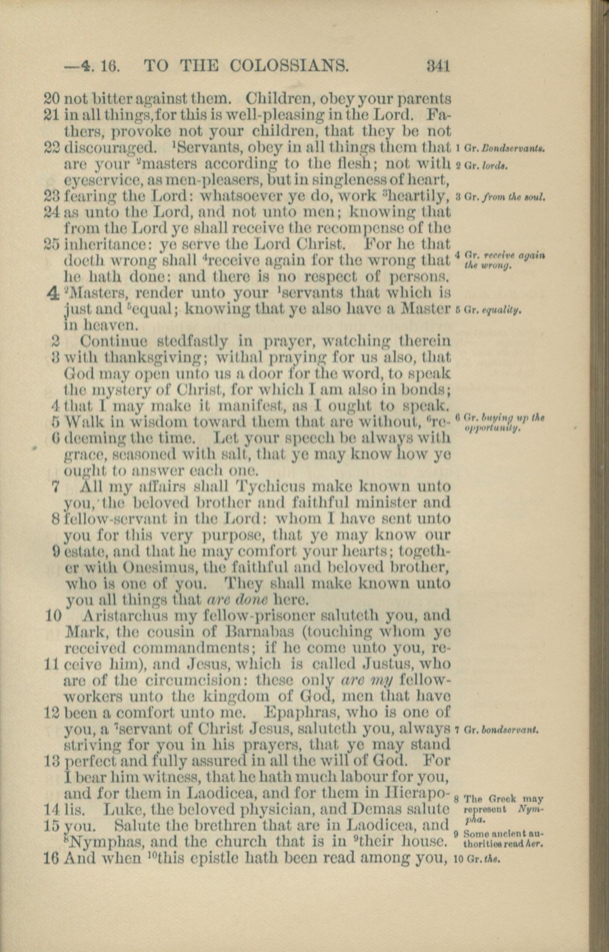 1881年New Testament 歌羅西書 3 章 20 節到 4 章 16 節