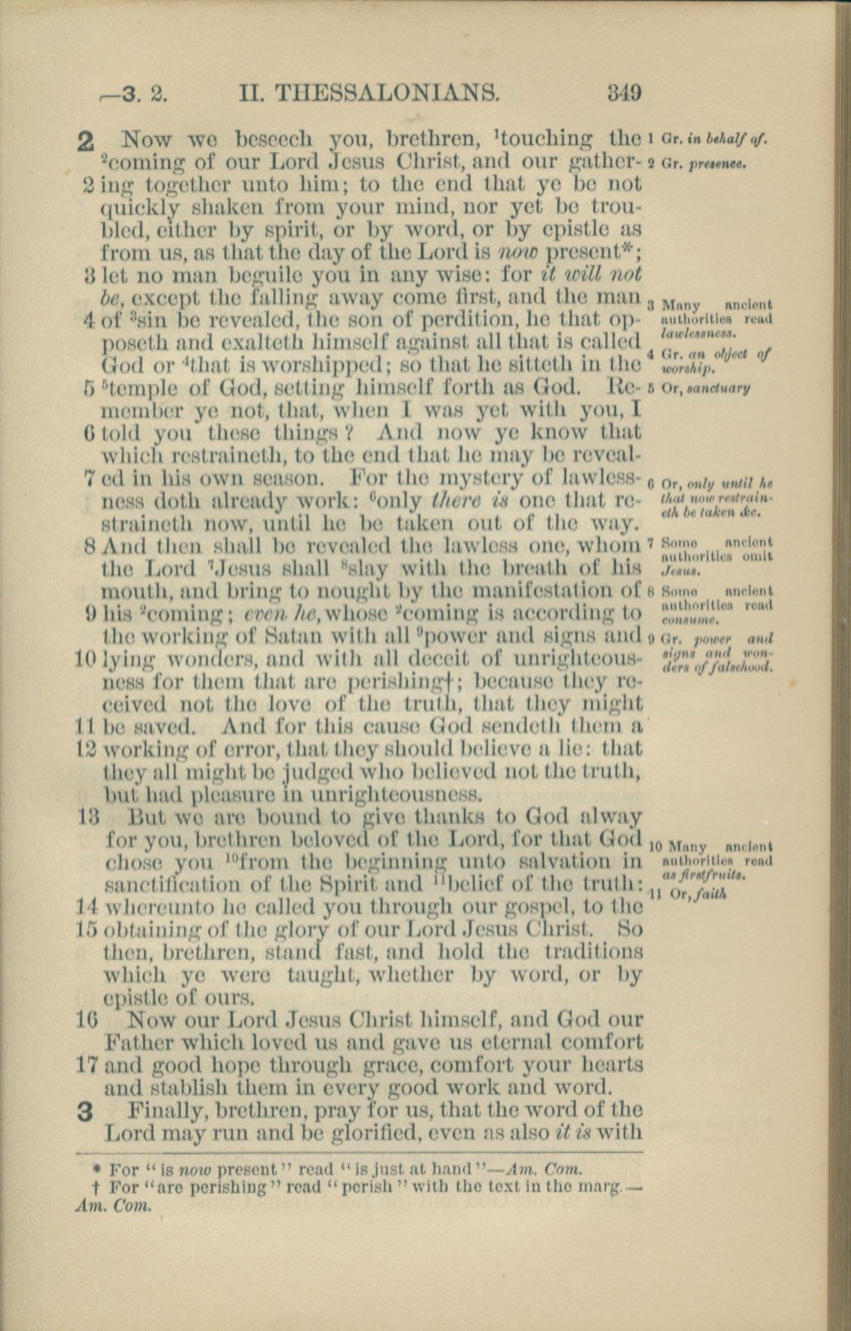 1881年New Testament 帖撒羅尼迦後書 2 章 1 節到 3 章 1 節