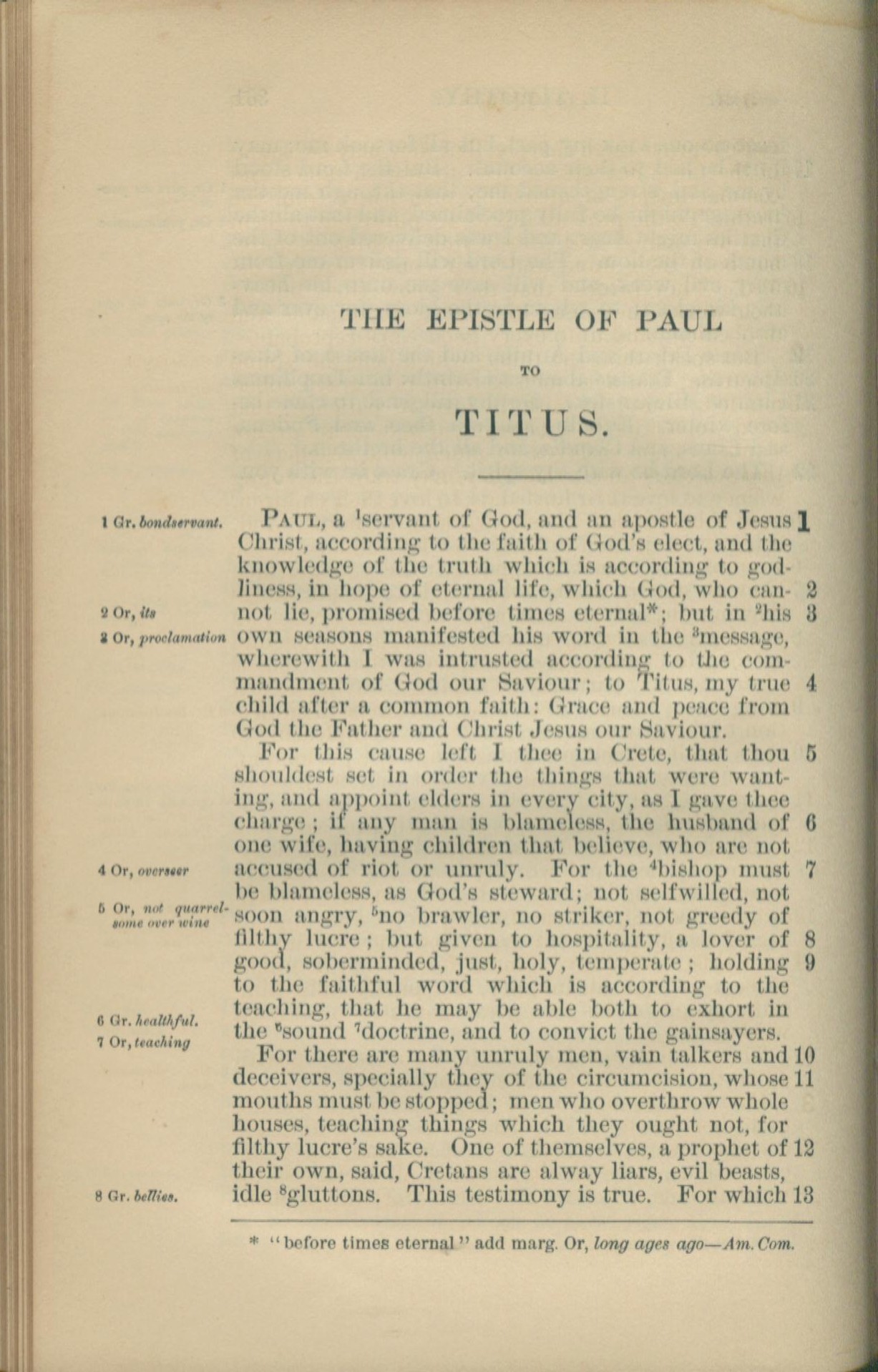 1881年New Testament 提多書 1 章 1 節到 1 章 13 節