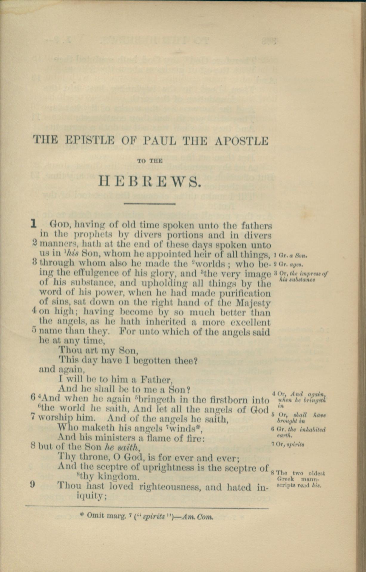 1881年New Testament 希伯來書 1 章 1 節到 1 章 9 節